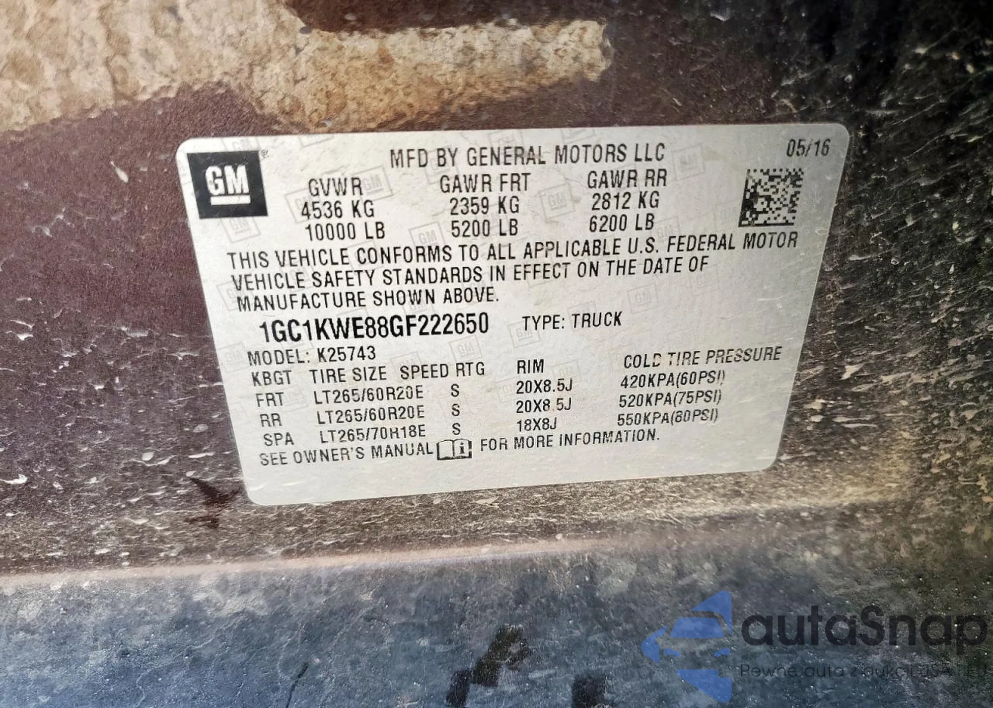 LOT: 81917675 VIN: 1GC1KWE88GF222650