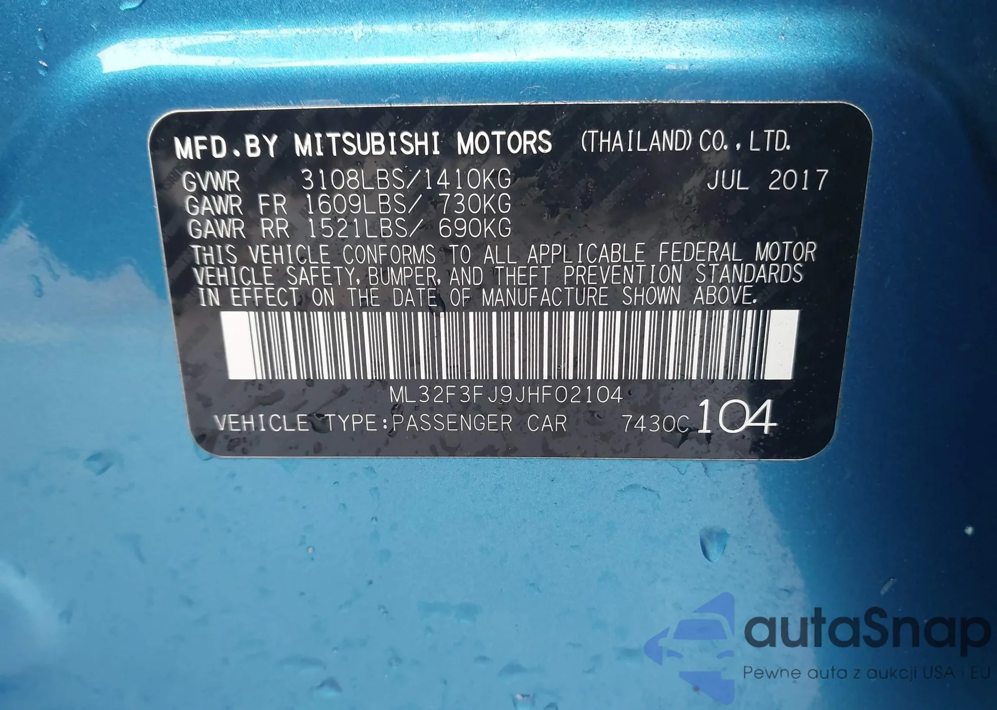 LOT: 43122136 VIN: JA3AU86U18U009150