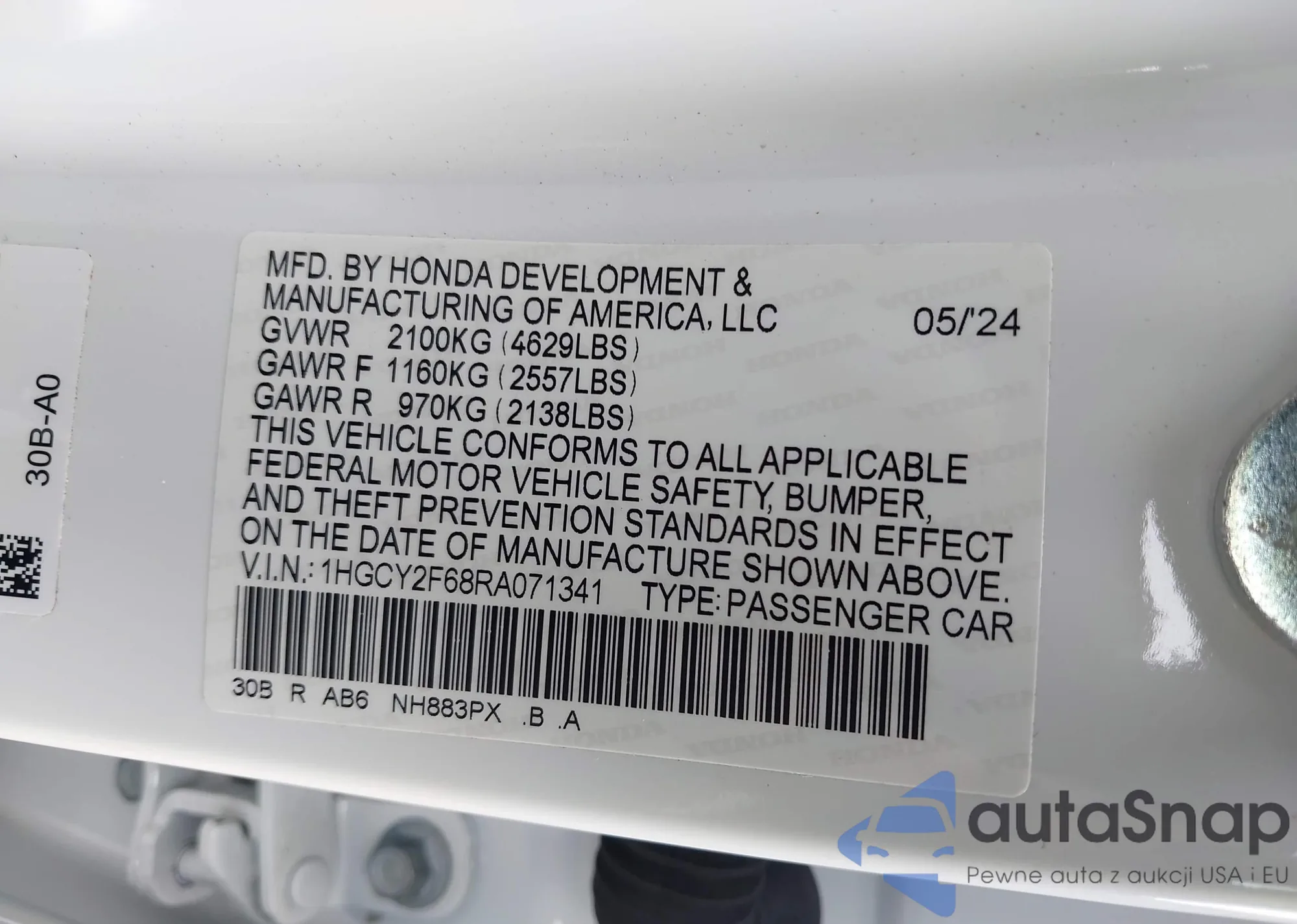 • VIN 1HGCV2F34LA023261