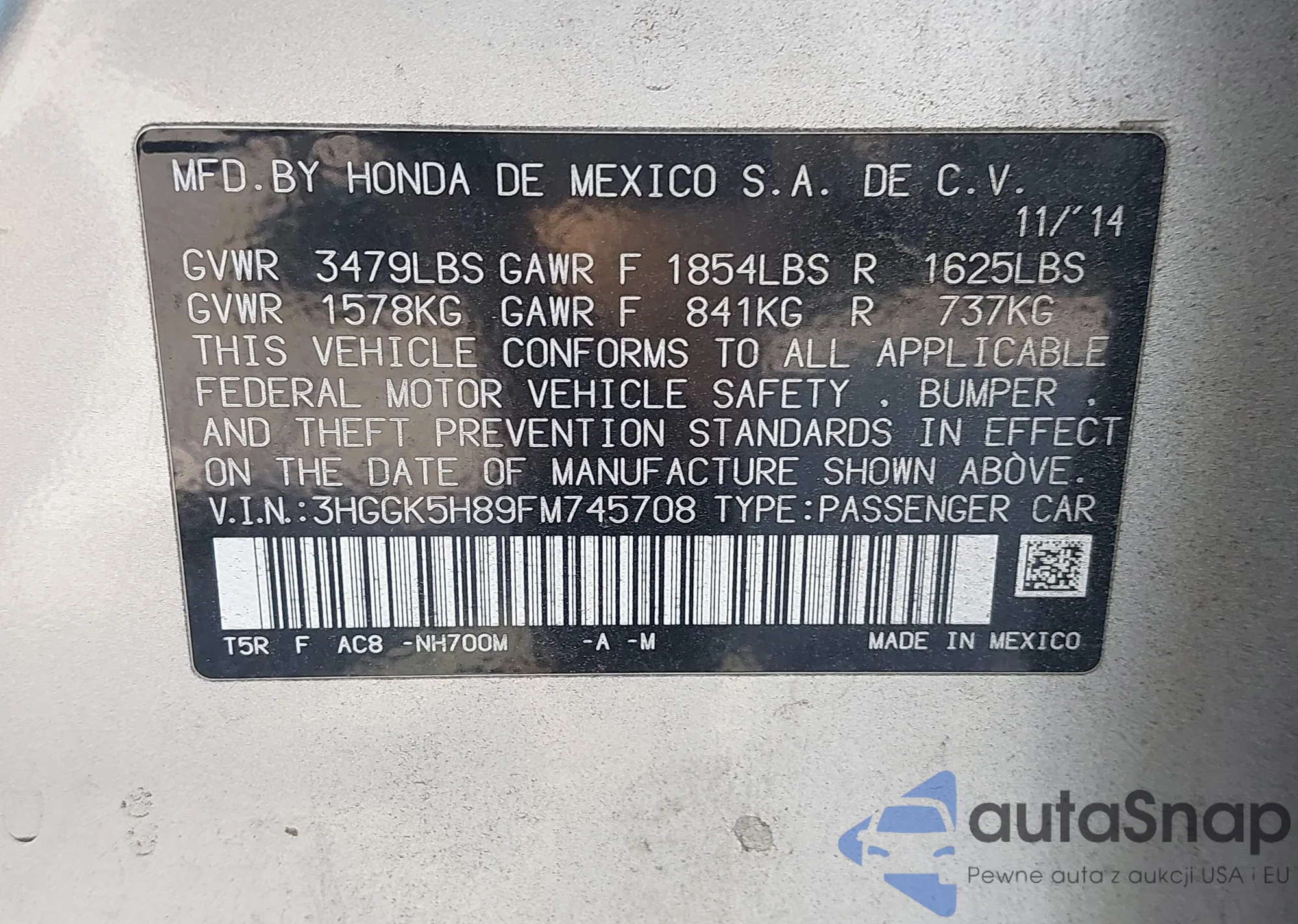 • VIN 3HGGK5H89FM745708