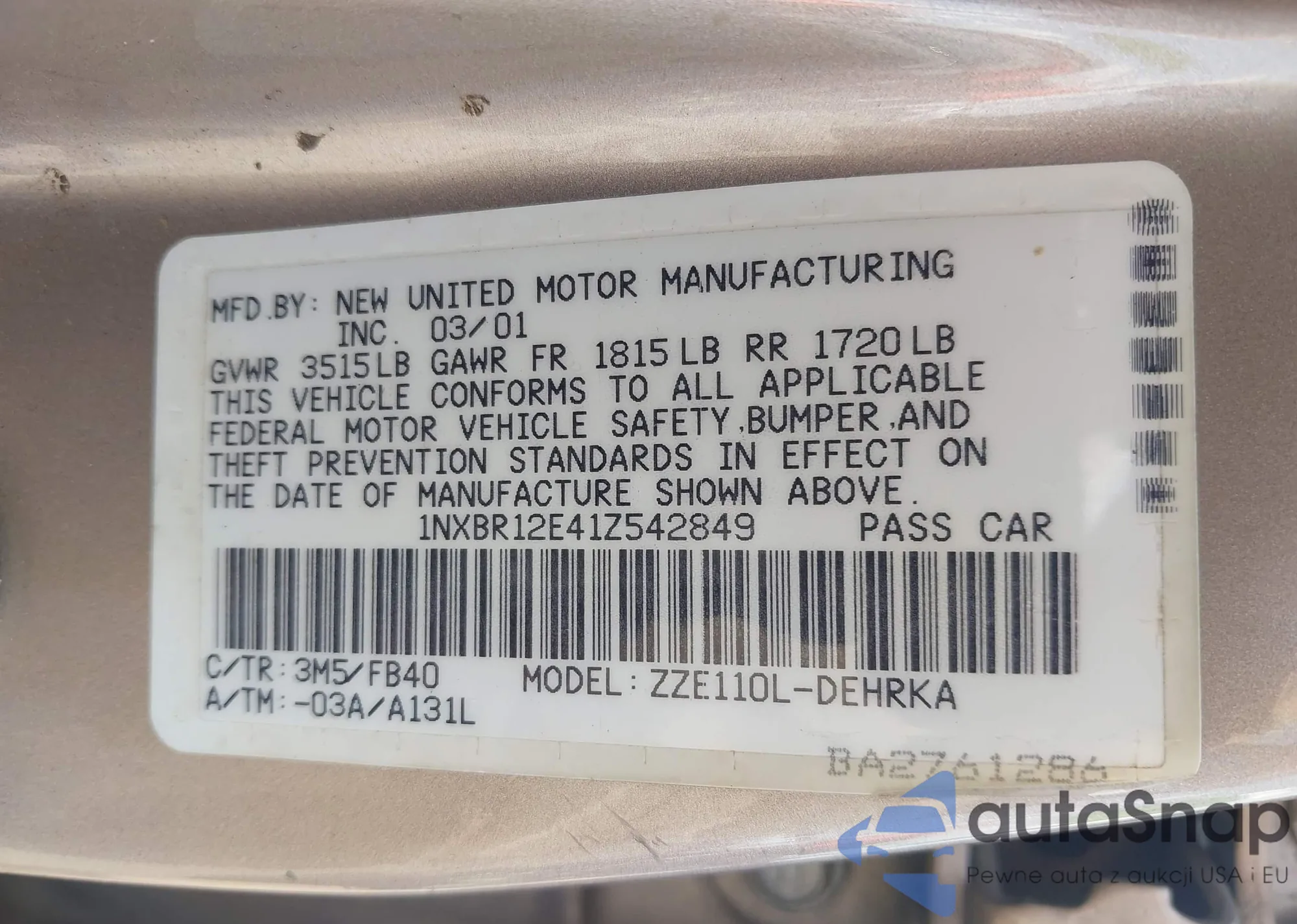 • VIN 1NXBR12E41Z542849