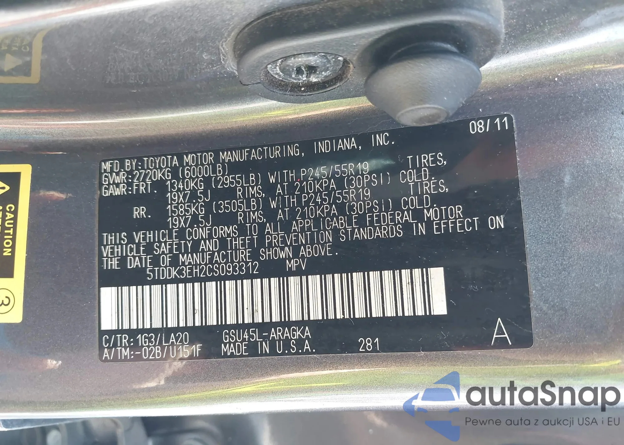 • VIN 5TDDK3EH2CS093312