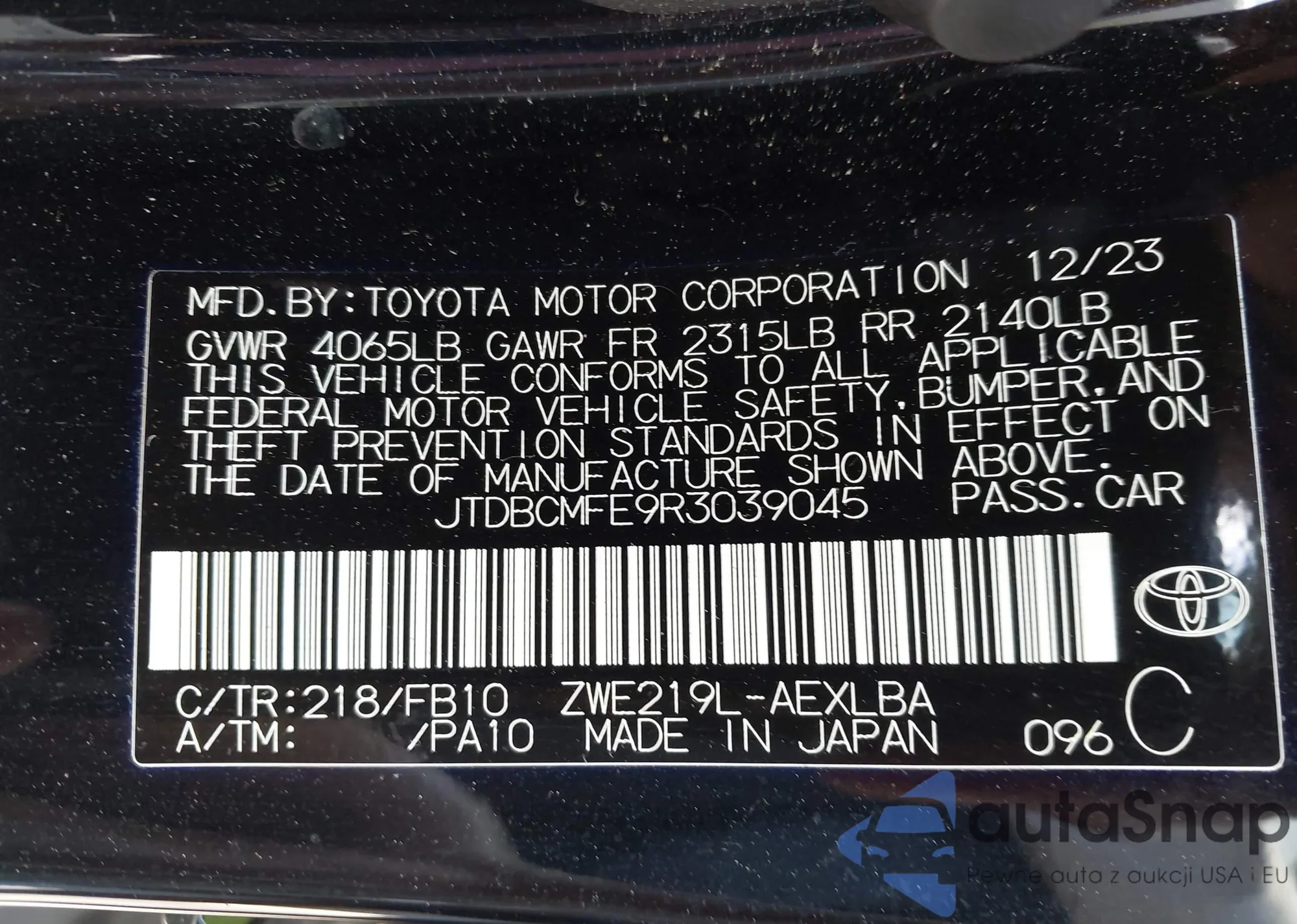 LOT: 43208576 VIN: JTDBCMFE9R3039045