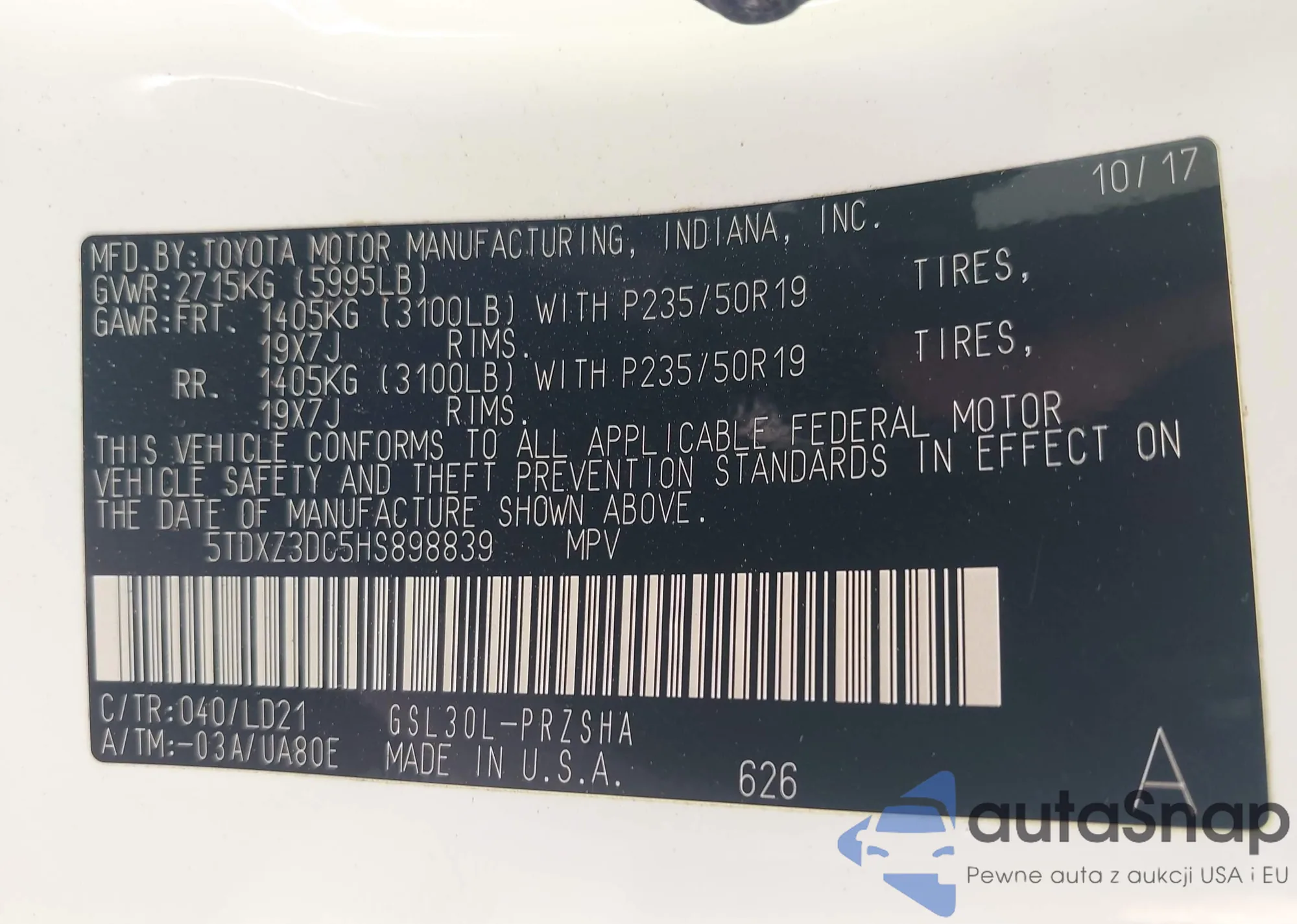 • VIN 1FADP5BU9DL545960