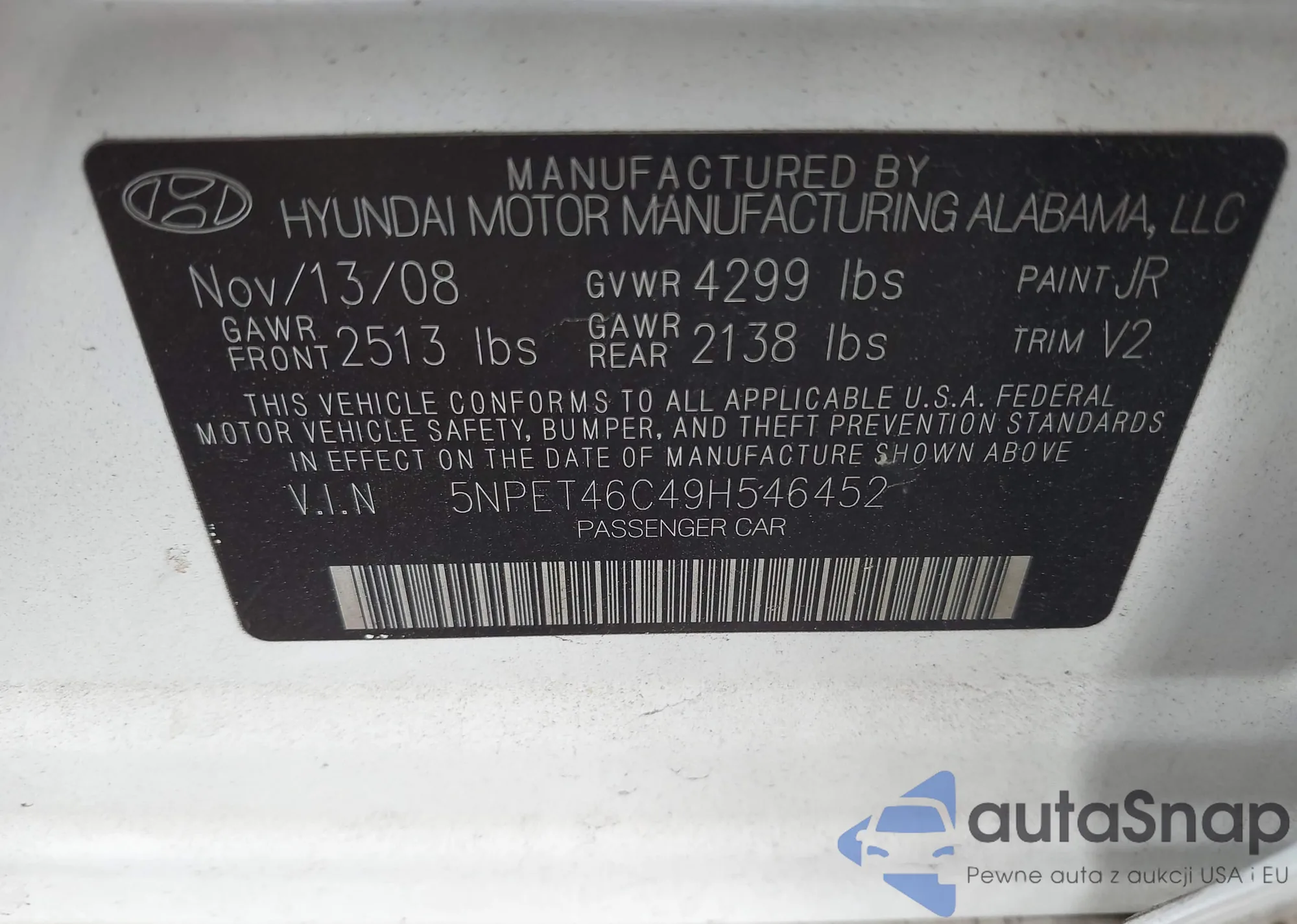 LOT: 43313538 VIN: 5NPET46C49H546452