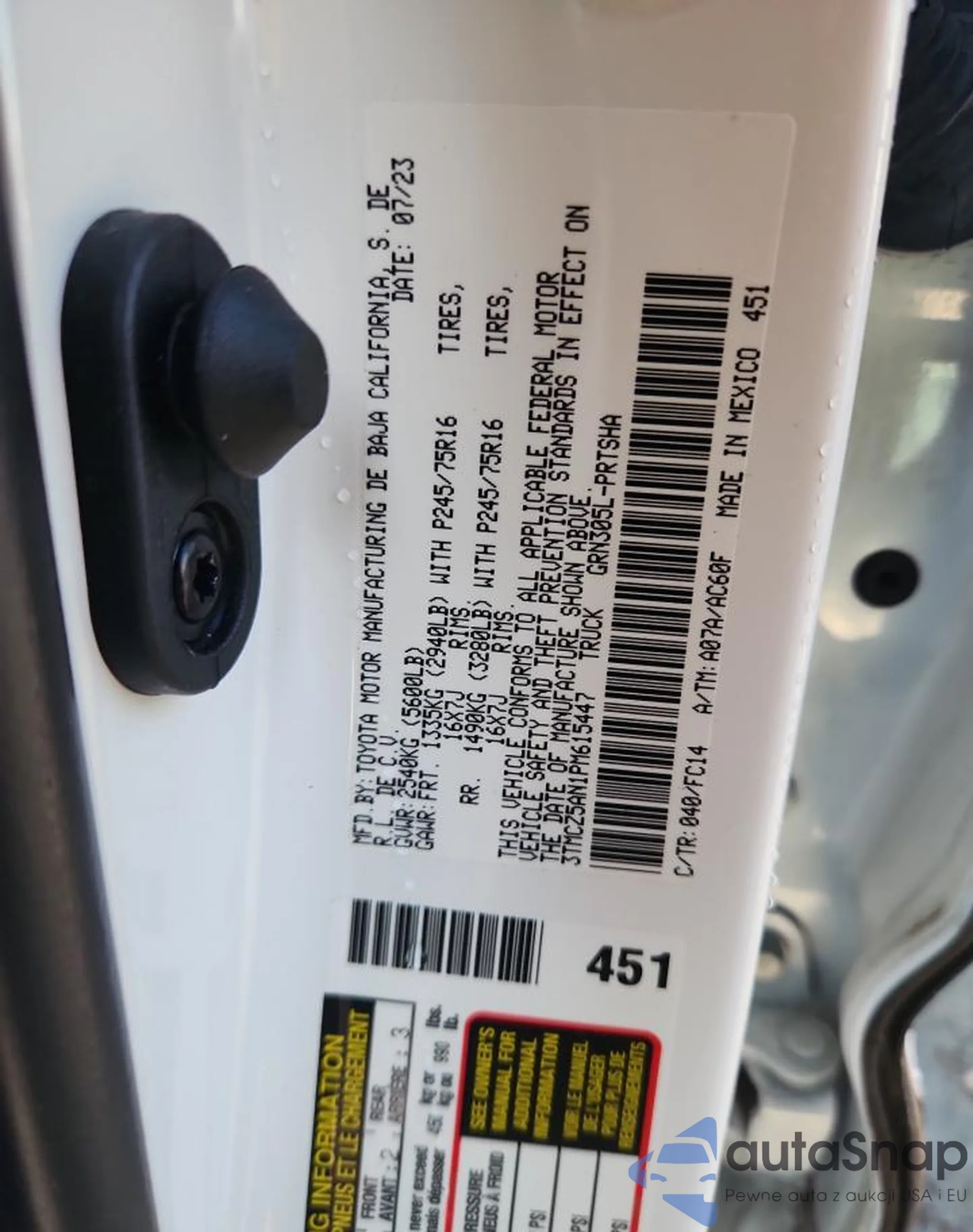 • VIN 3TMCZ5AN1PM615447