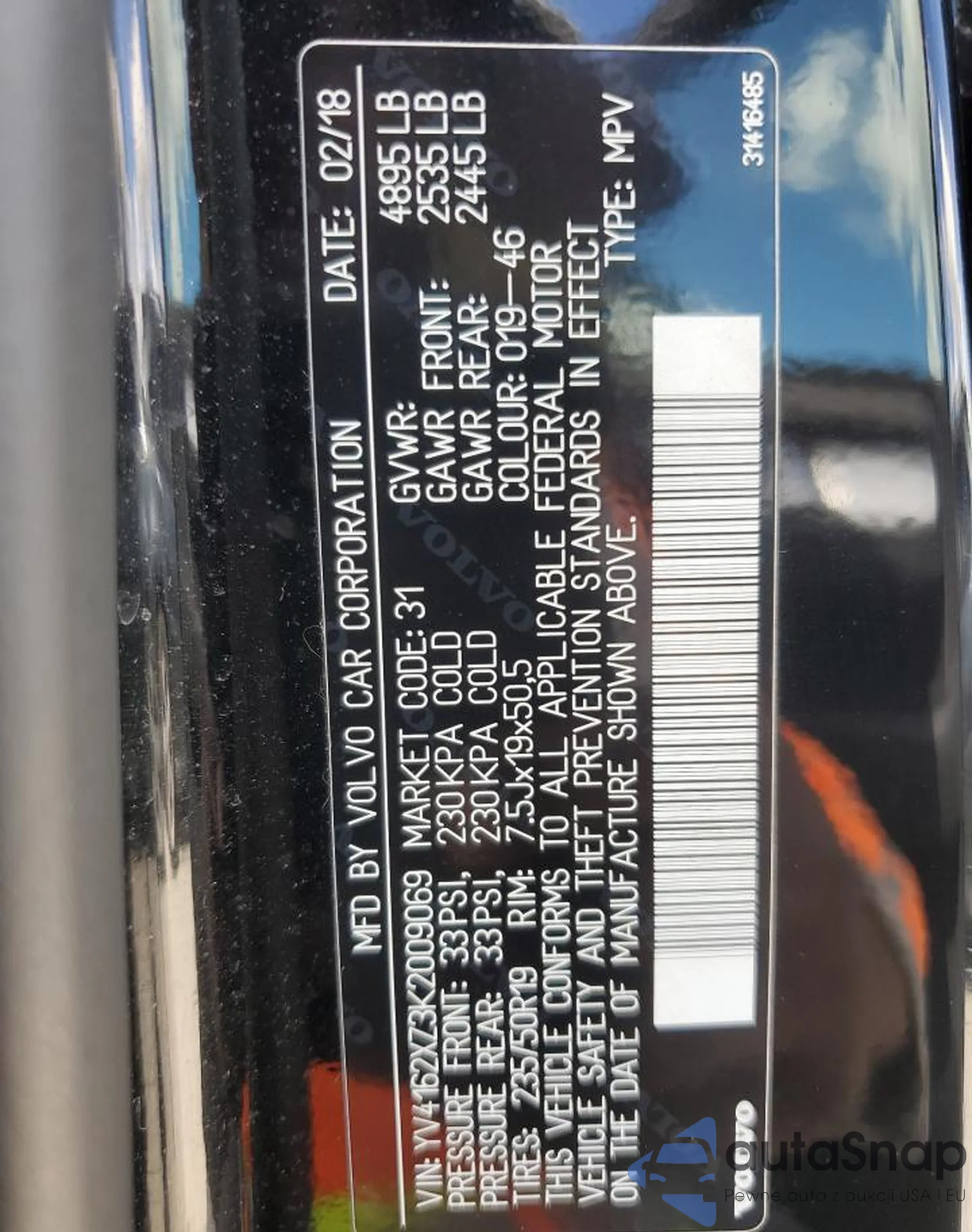 LOT: 81114195 VIN: YV4162XZ3K2009069