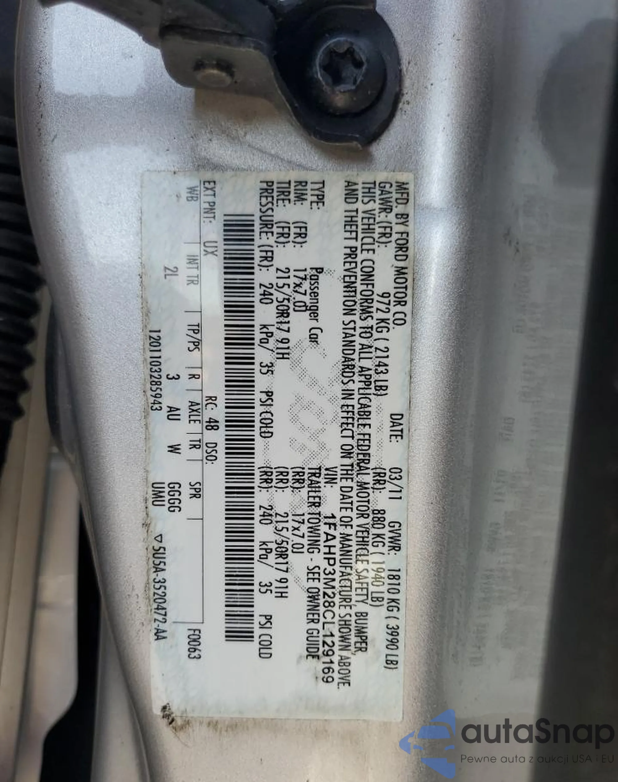 LOT: 81124125 VIN: 1FAHP3M28CL129169