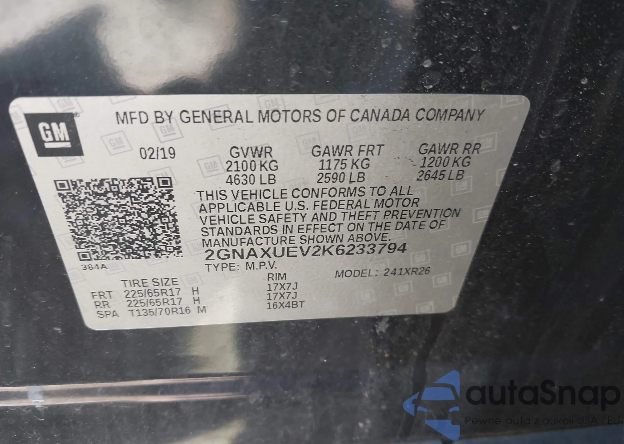 LOT: 43271003 VIN: 2GNAXUEV2K6233794
