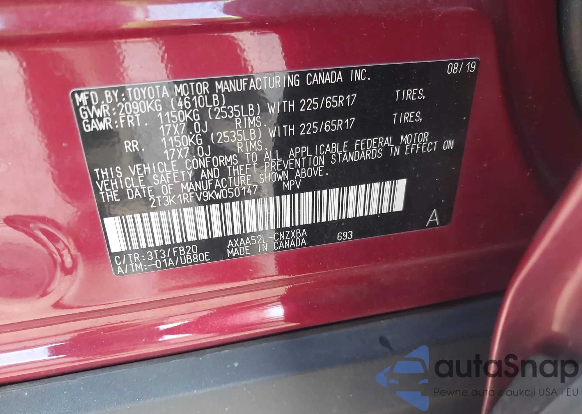 • VIN 4T1BK3DB9AU358655