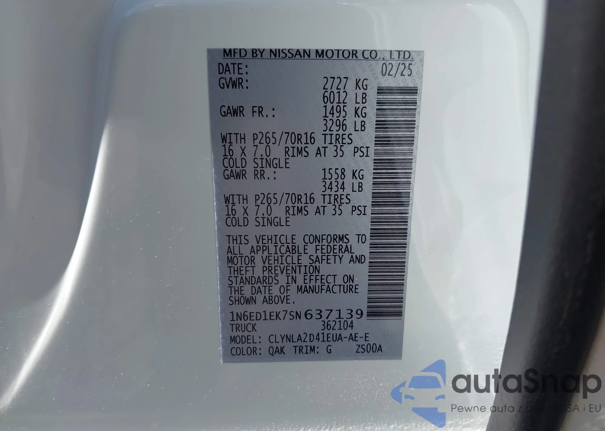 • VIN 1N6ED1EK7SN637139