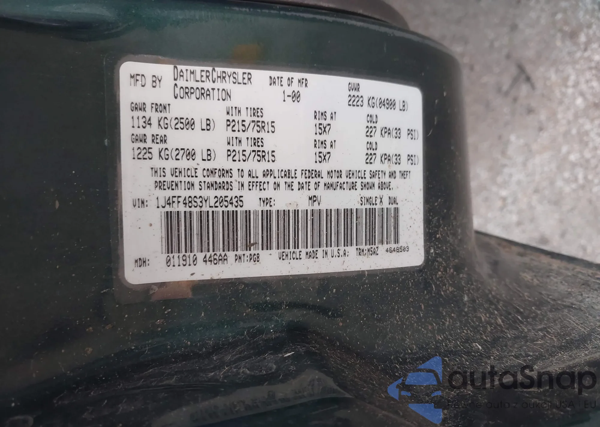 • VIN 1J4FF48S3YL205435