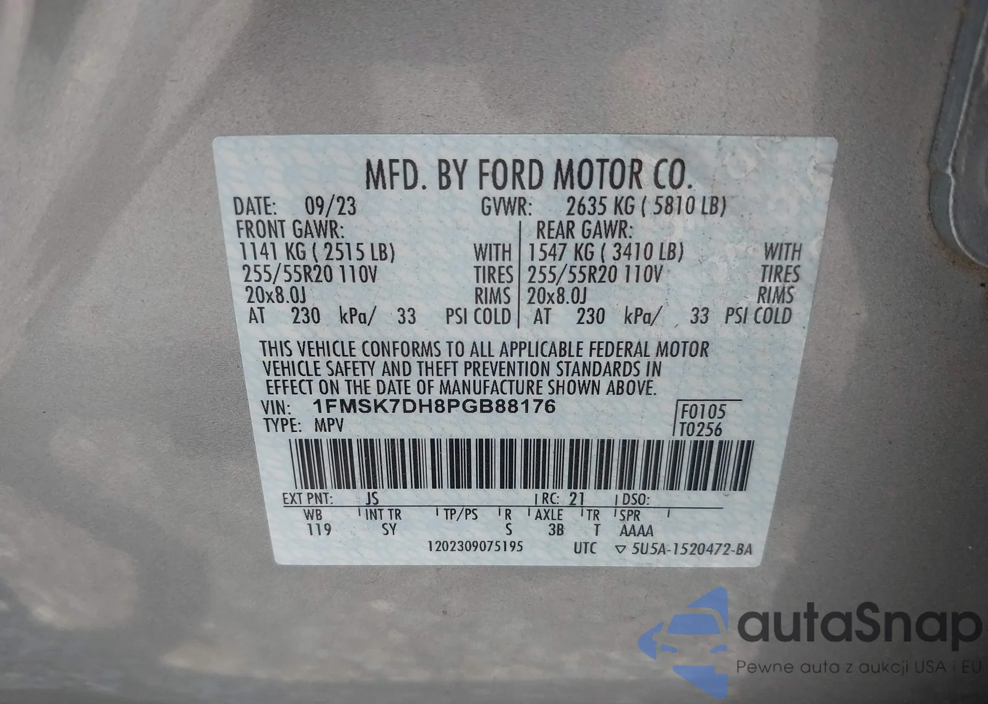 LOT: 43072447 VIN: 1FAFP44694F220208