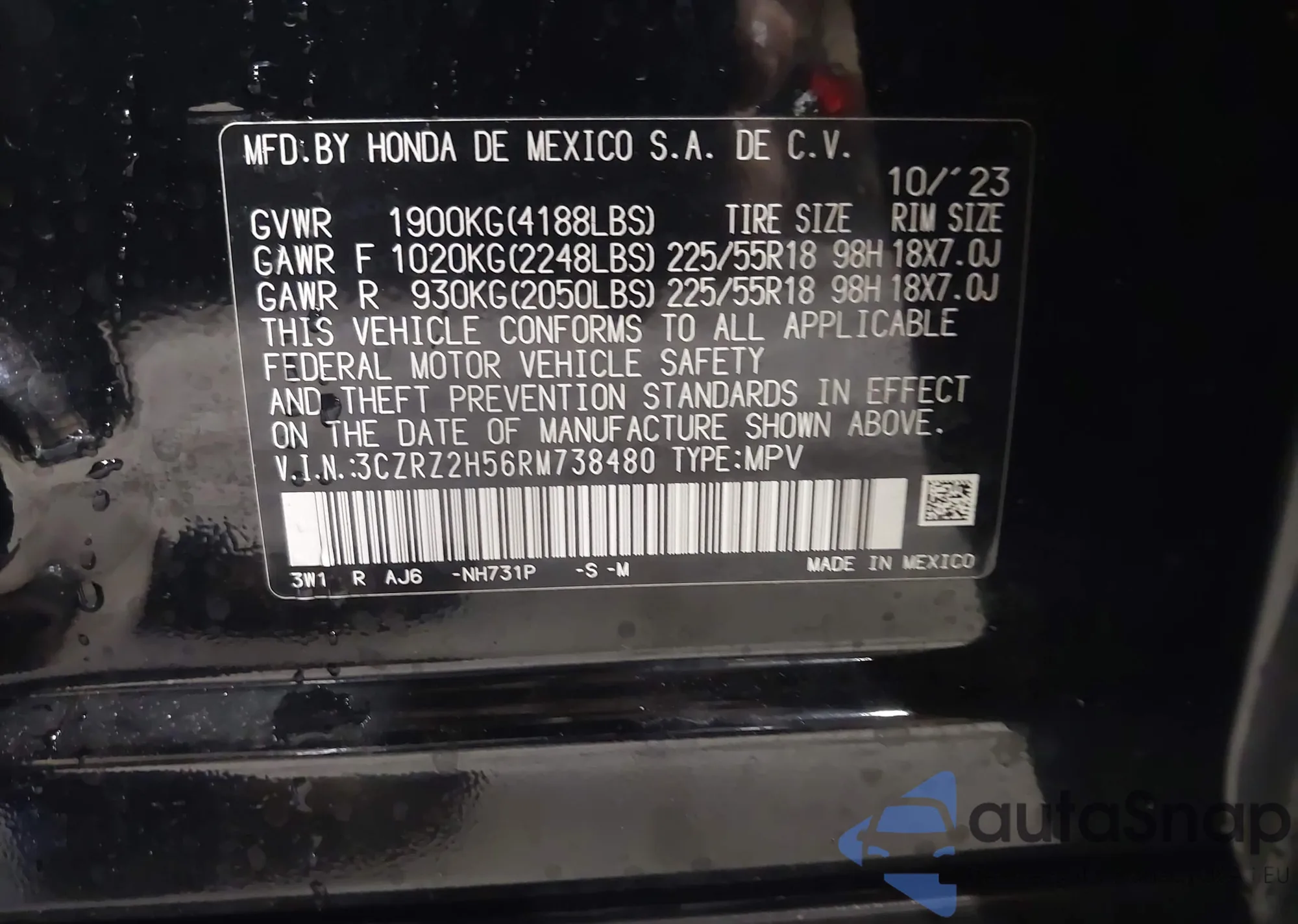 • VIN 3CZRZ2H56RM738480