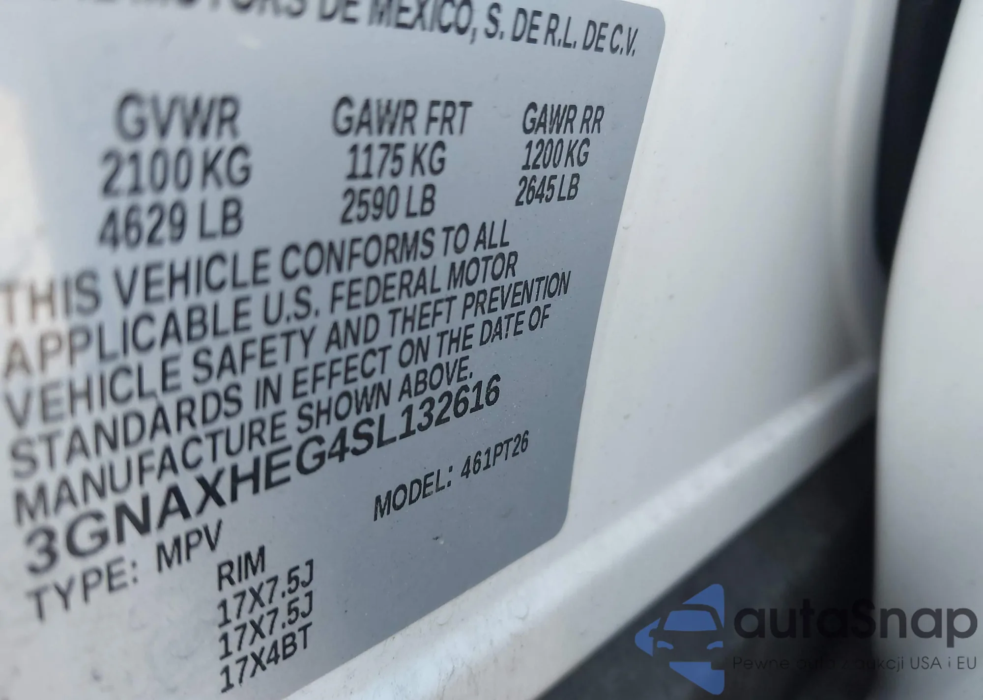 • VIN 2G4GS5EV6D9195037