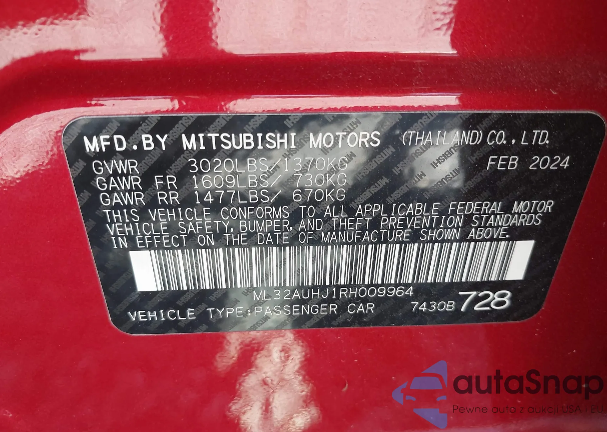 LOT: 43168712 VIN: ML32AUHJ1RH009964