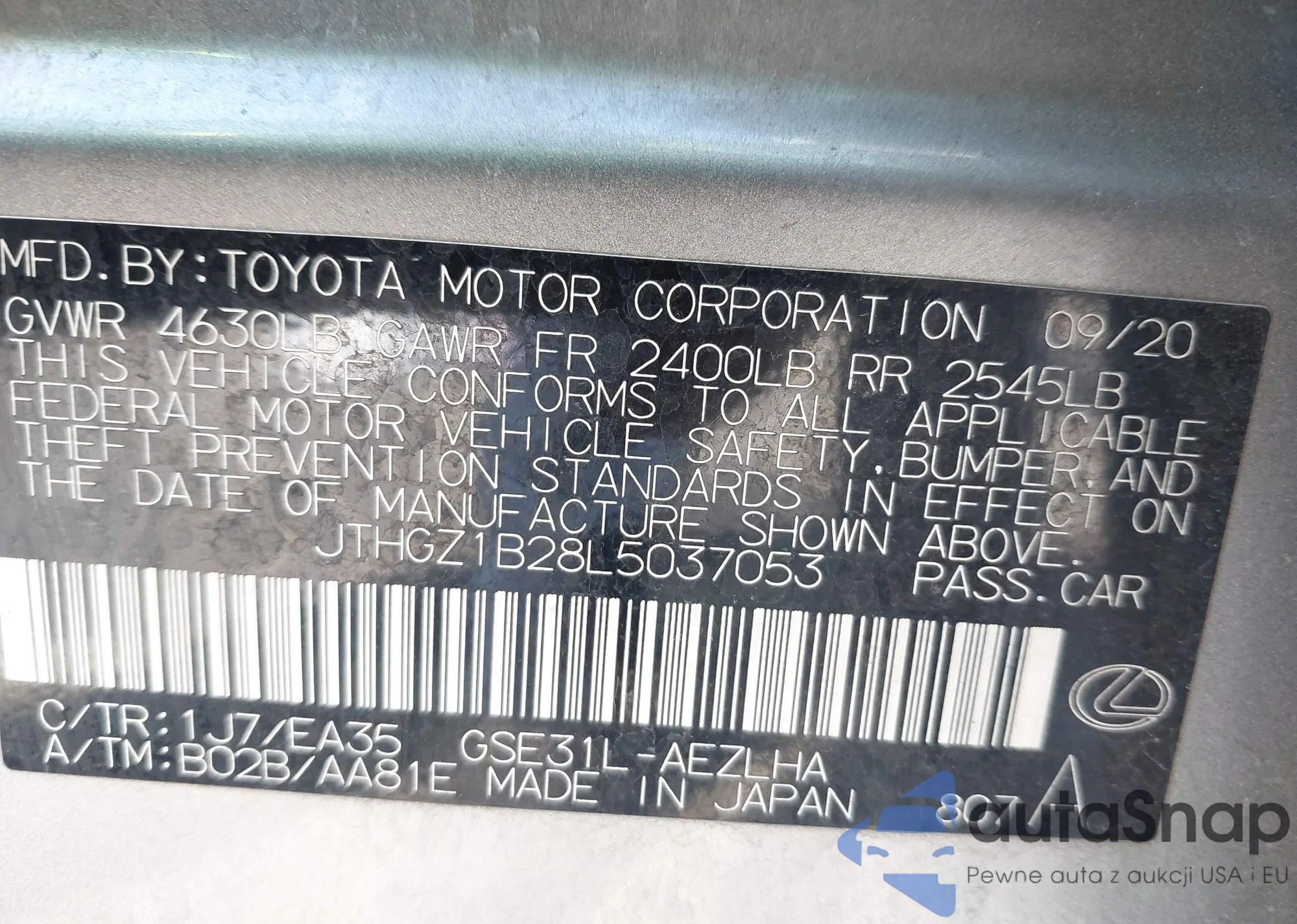 • VIN JTHGZ1B28L5037053