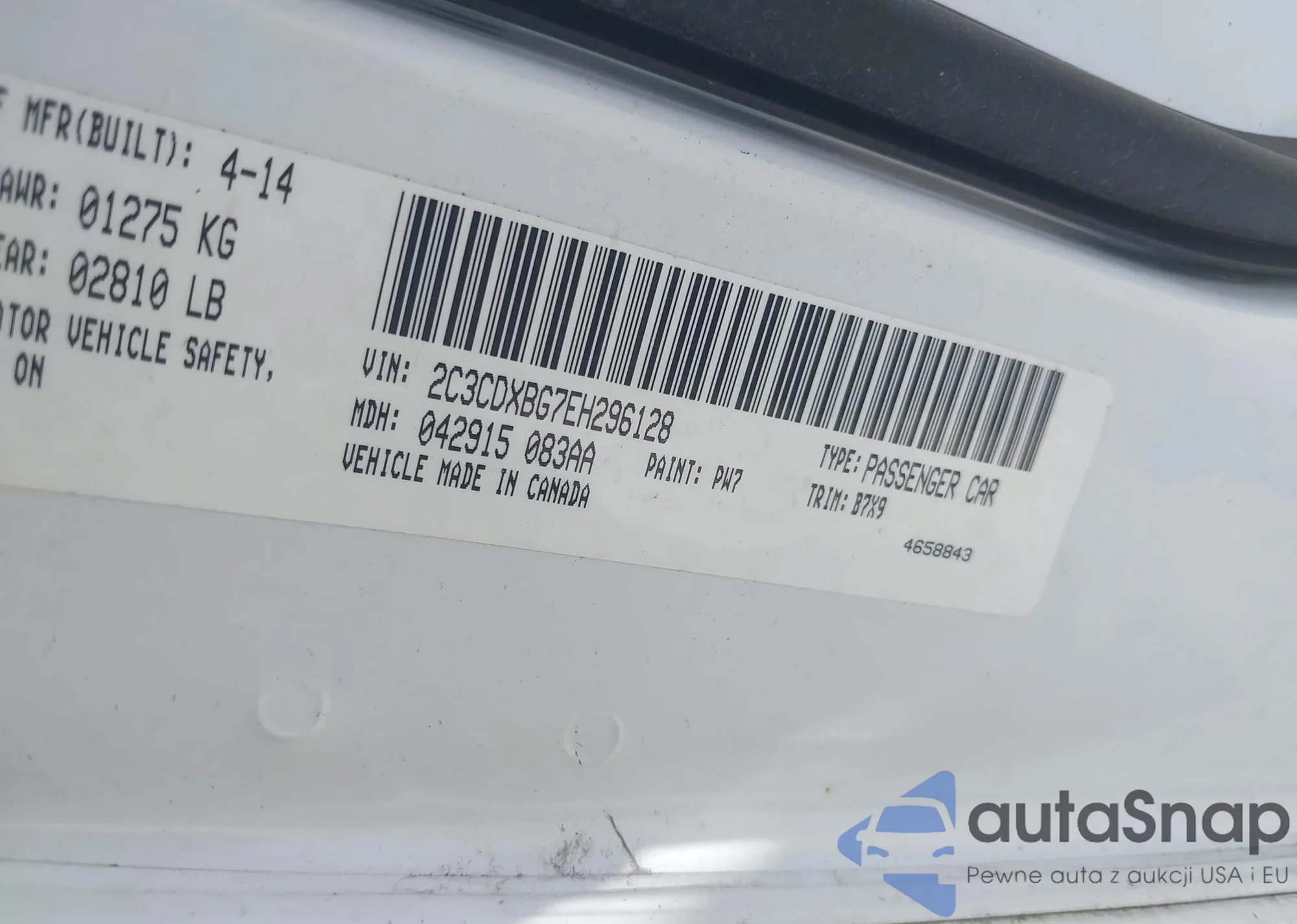 LOT: 43022310 VIN: 2C3CDXBG7EH296128