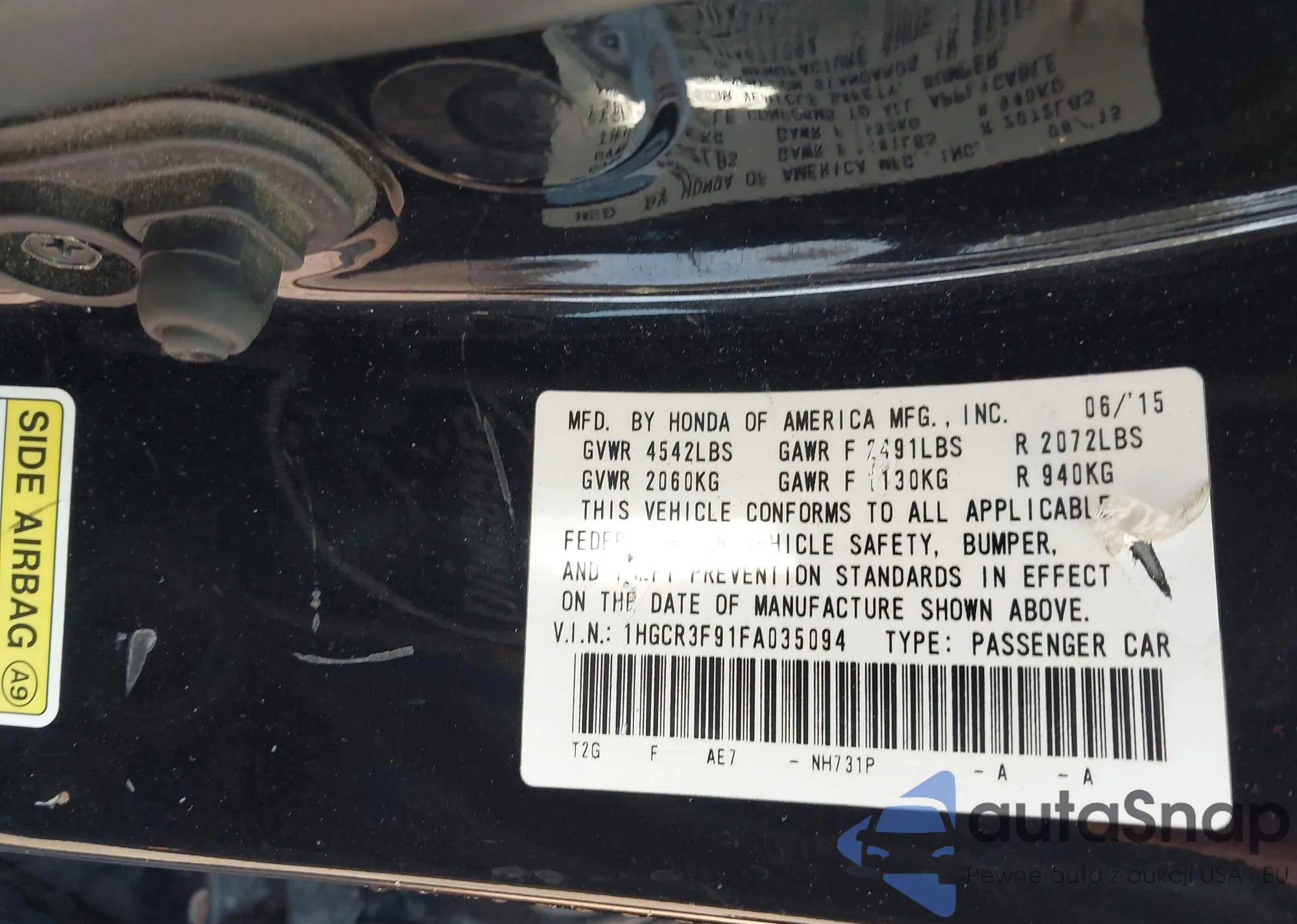 LOT: 43216952 VIN: 1HGCR3F91FA035094