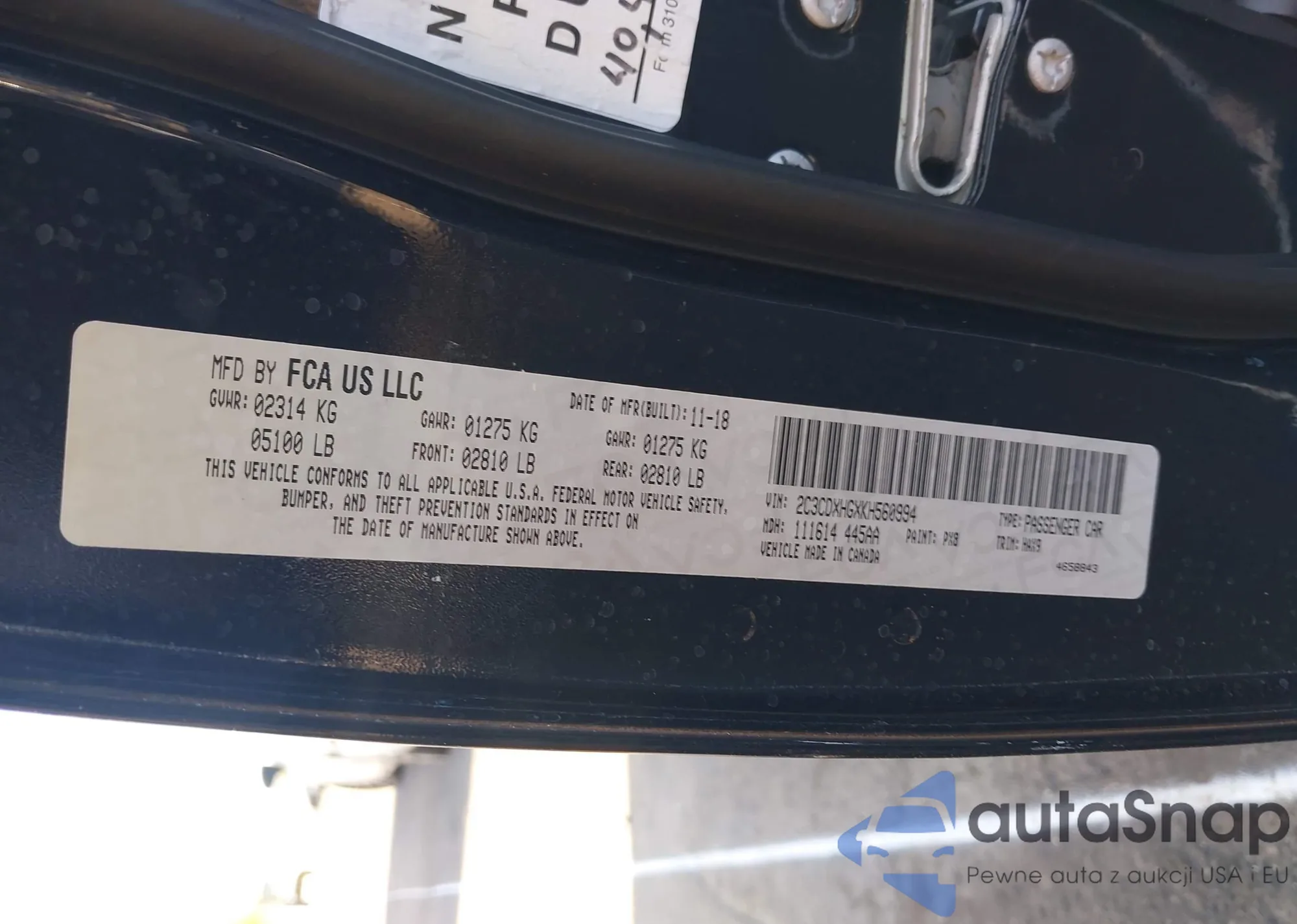 • VIN 2C3CDXHGXKH560994