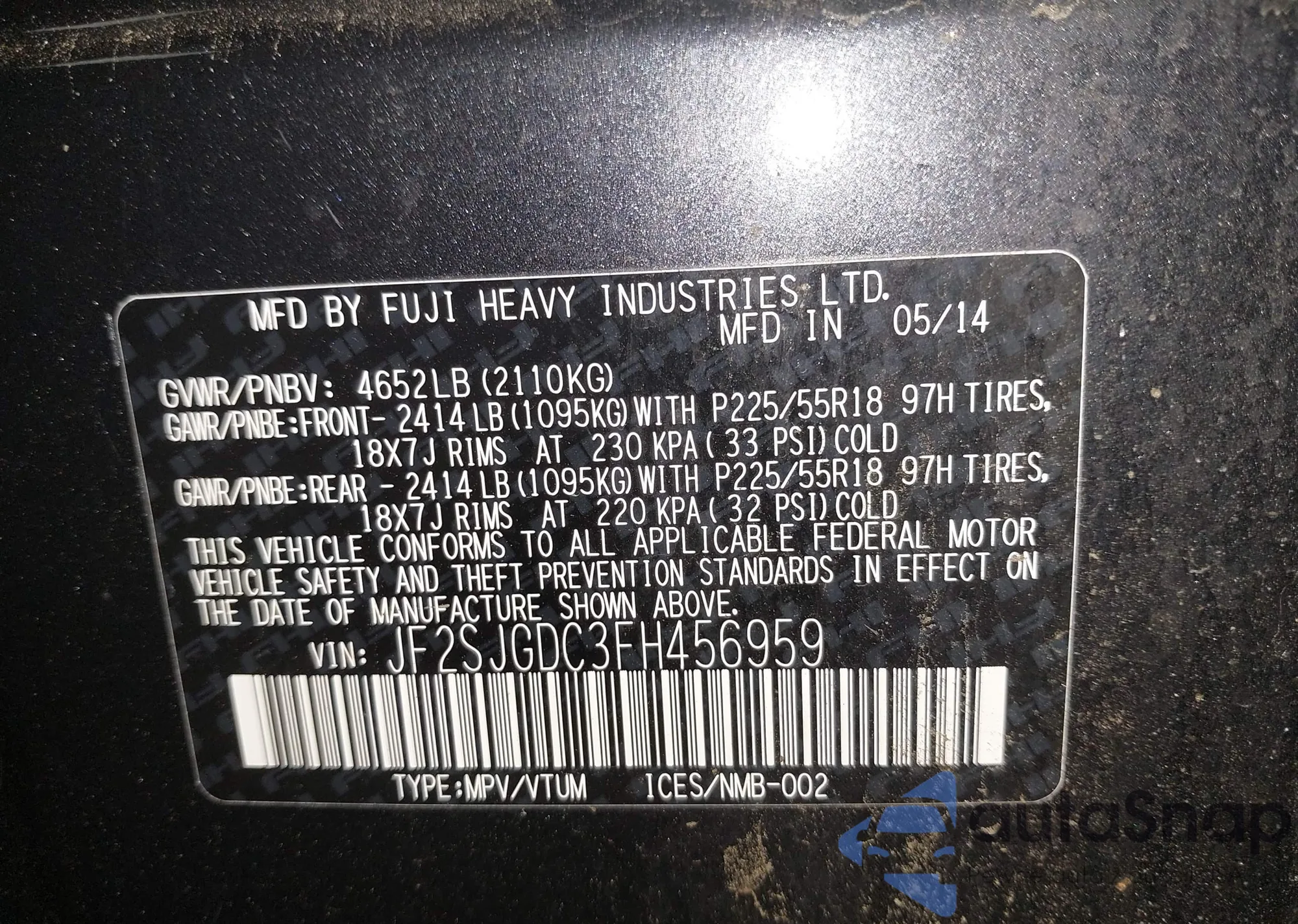 • VIN KL4CJHSB8FB209839