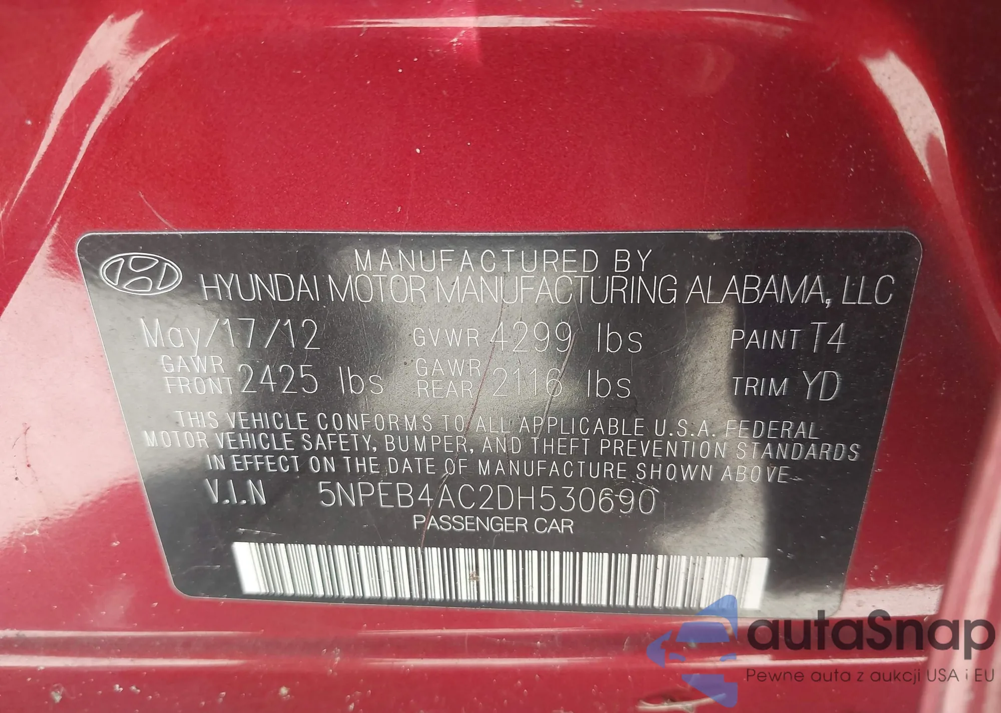• VIN 5NPEB4AC2DH530690