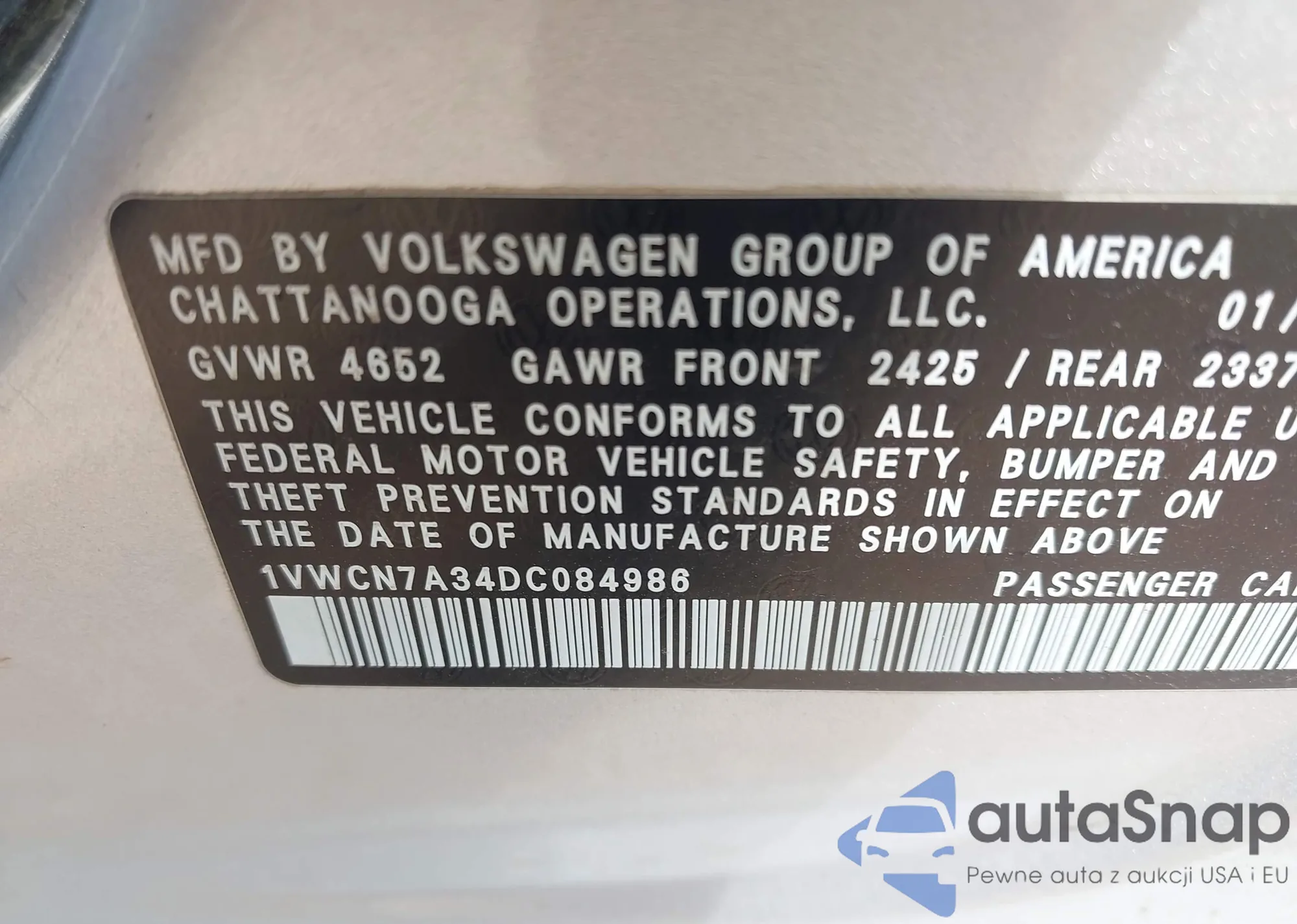 LOT: 42771821 VIN: 1VWCN7A34DC084986