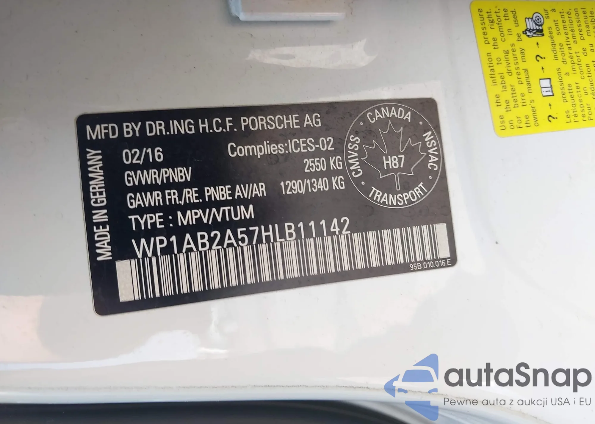 LOT: 42861360 VIN: WP1AB2A57HLB11142