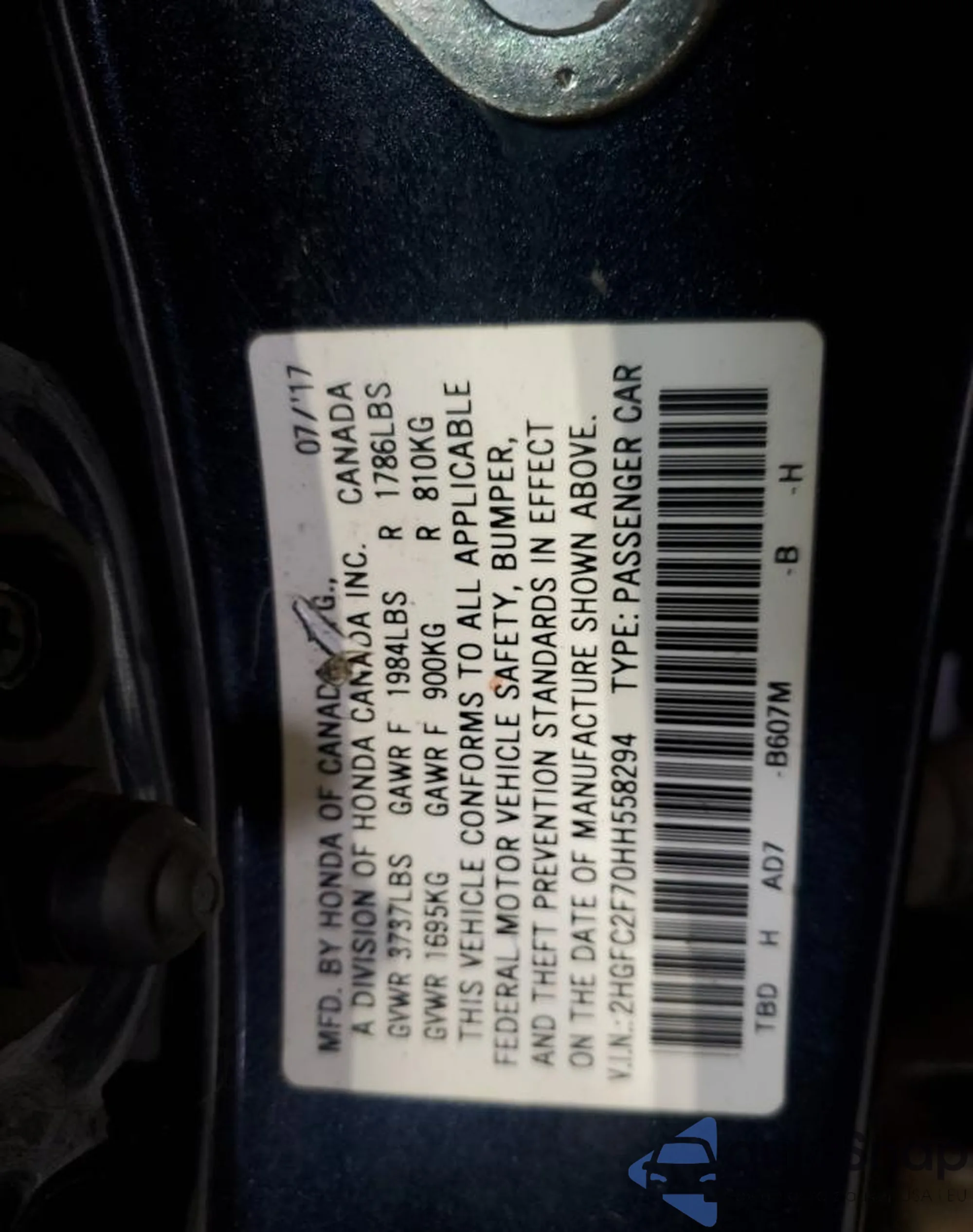 LOT: 67516545 VIN: 1HGCP2F77AA005900