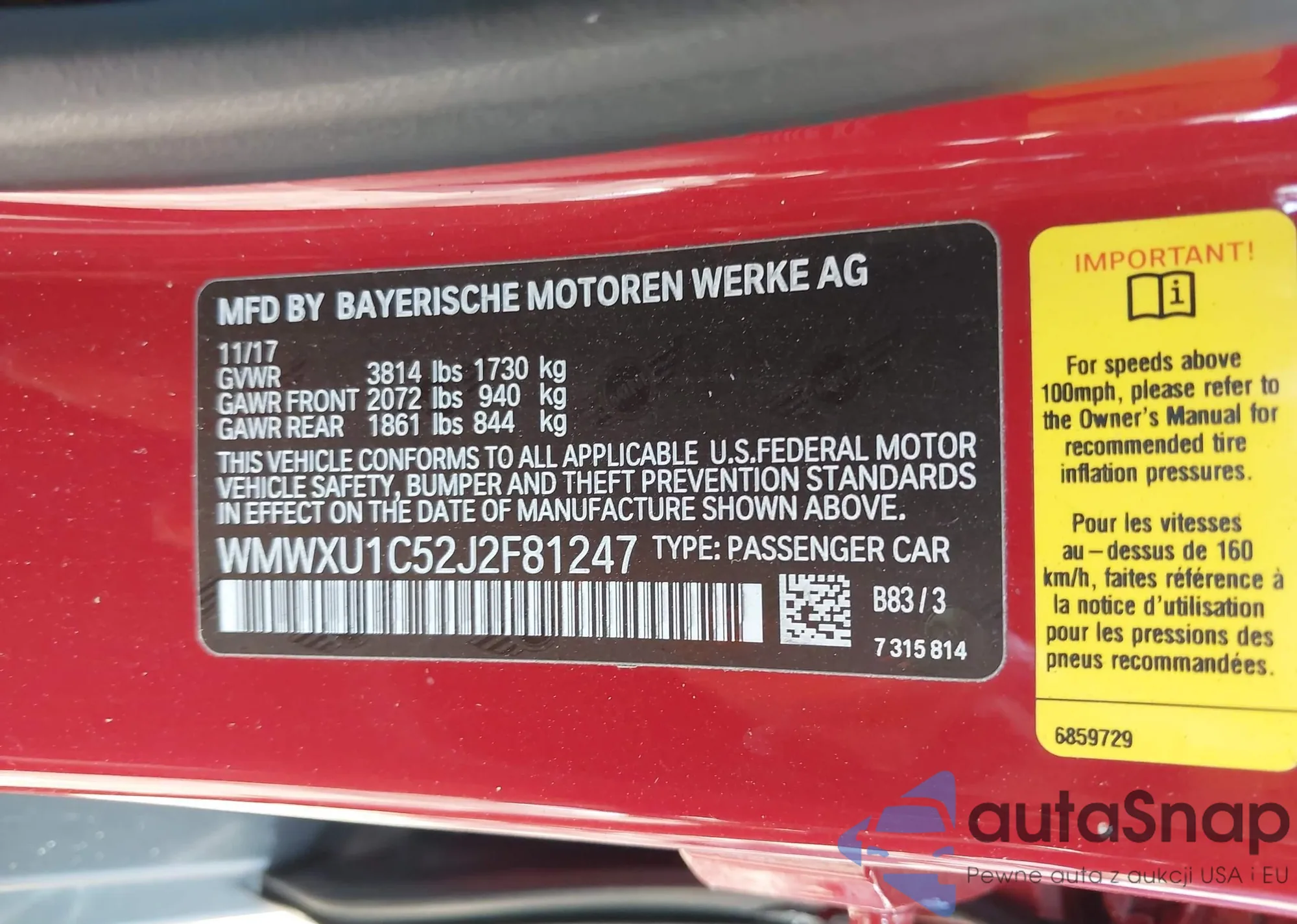 • VIN WMWXU1C52J2F81247