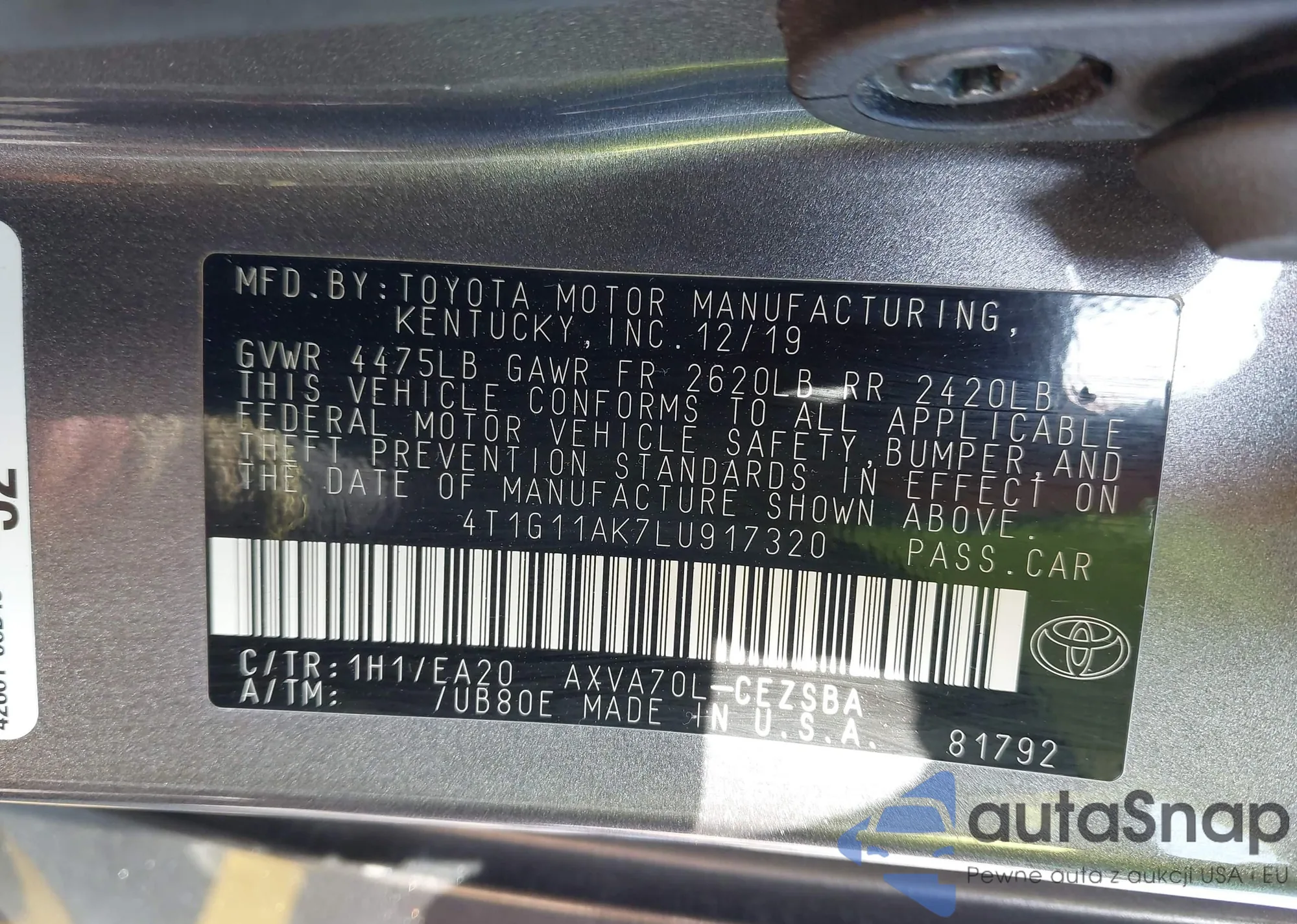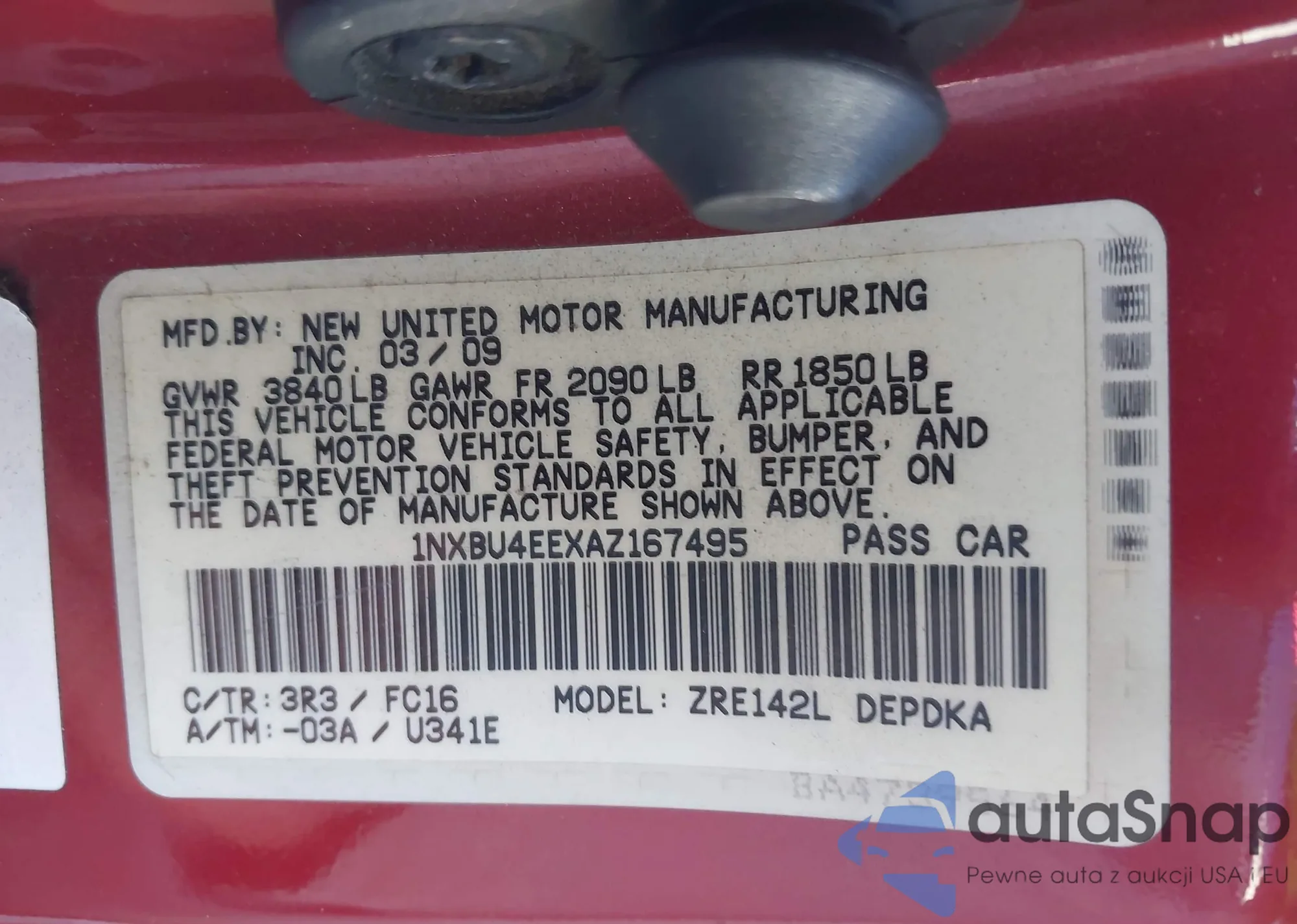 • VIN 1NXBU4EEXAZ167495