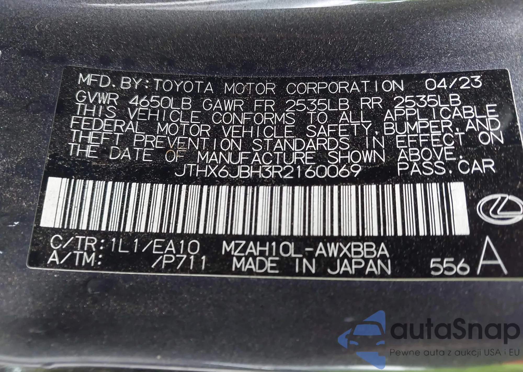 • VIN JTHX6JBH3R2160069