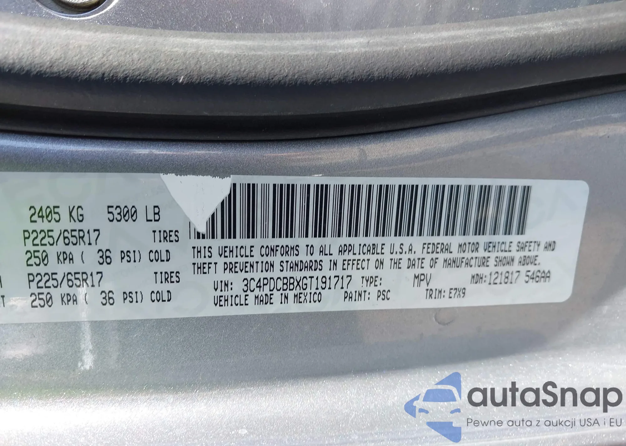 LOT: 43221511 VIN: 3C4PDCBBXGT191717