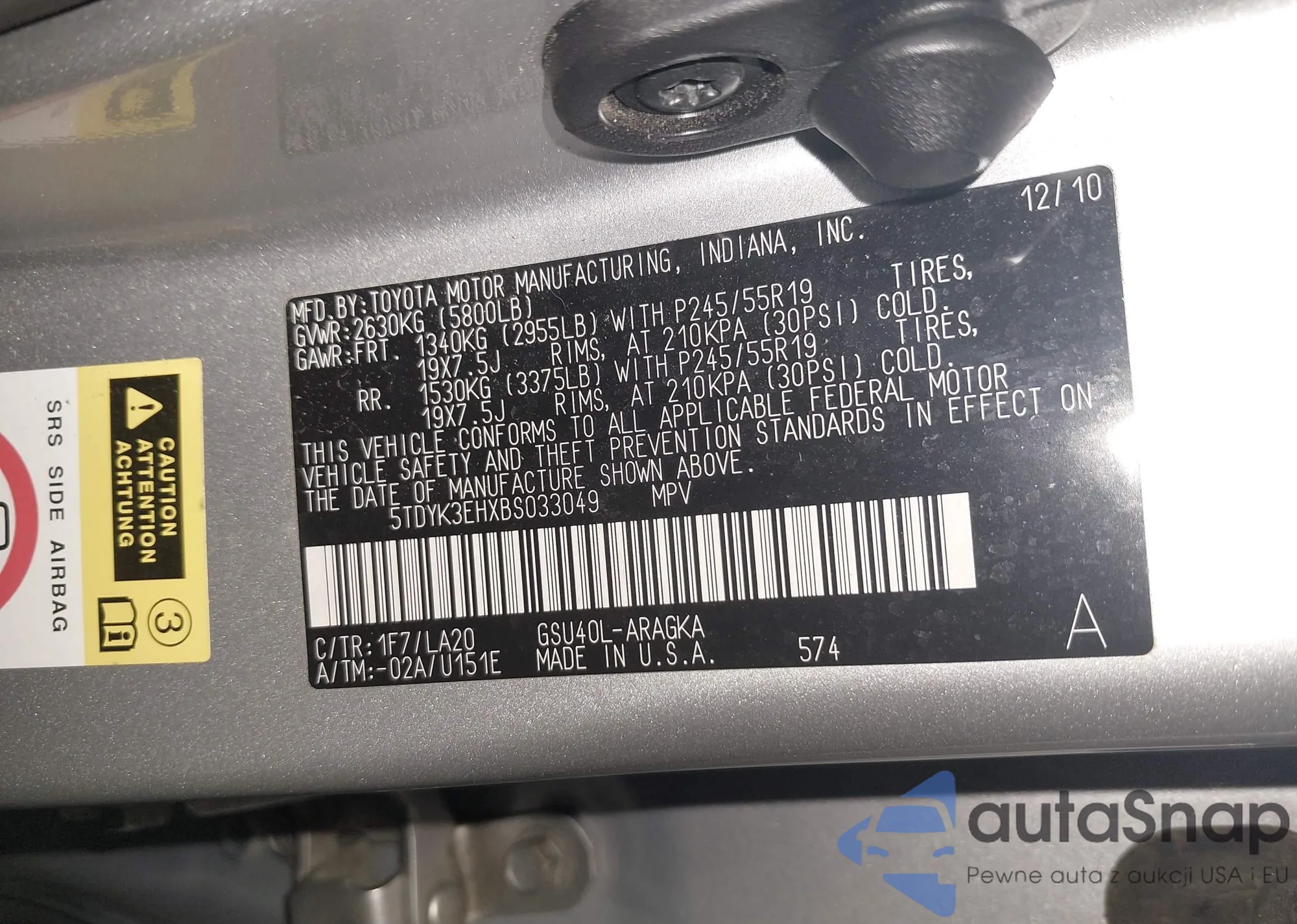 • VIN 5TDYK3EHXBS033049