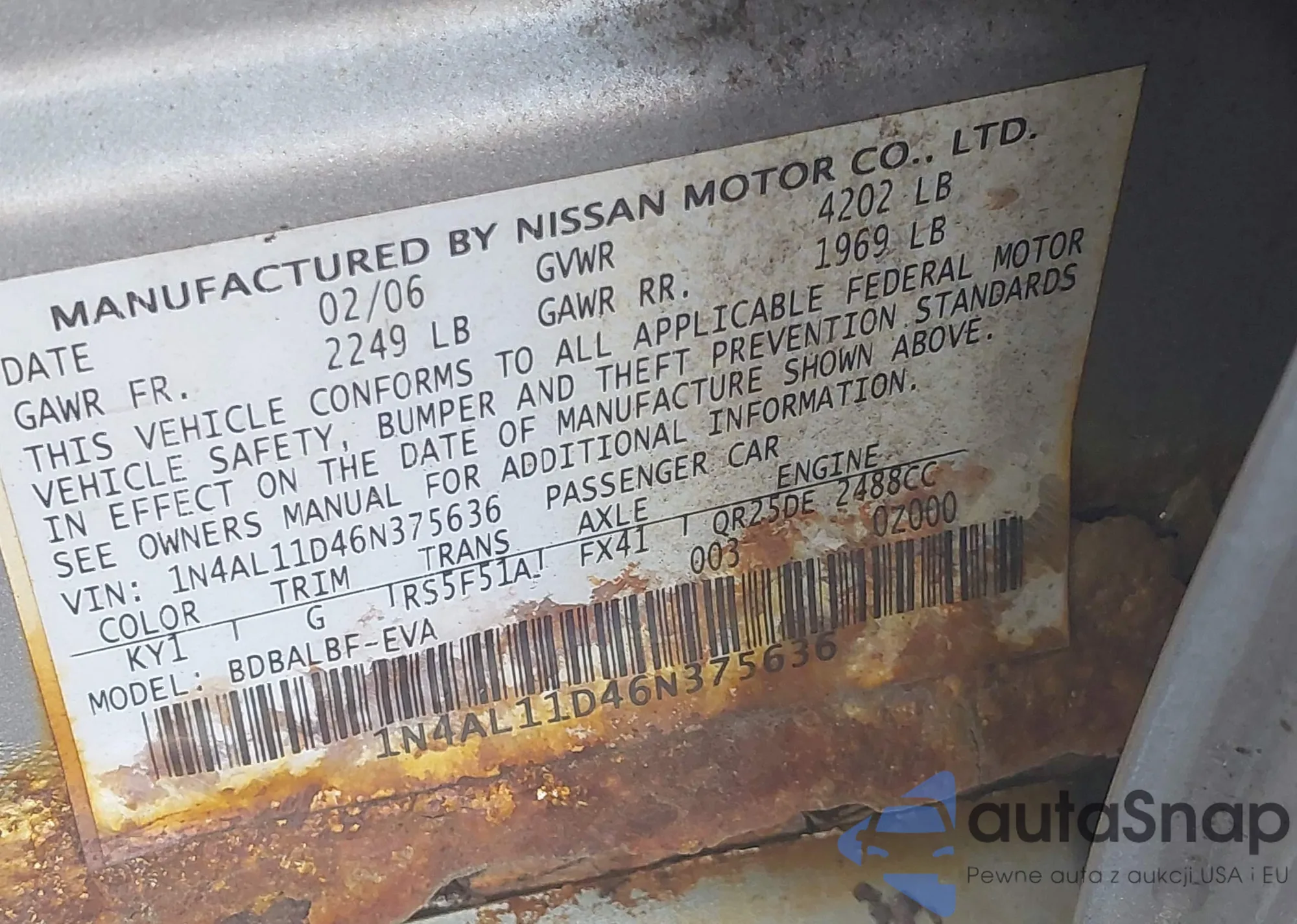 LOT: 42388142 VIN: 1N4AL11D46N375636