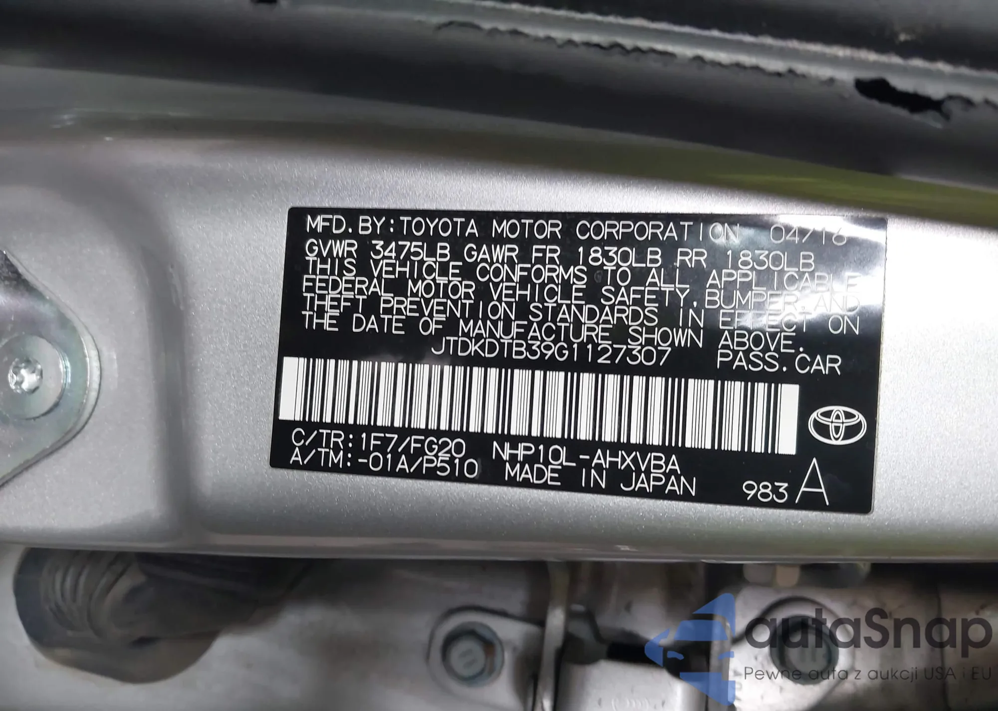 • VIN JTDKDTB39G1127307