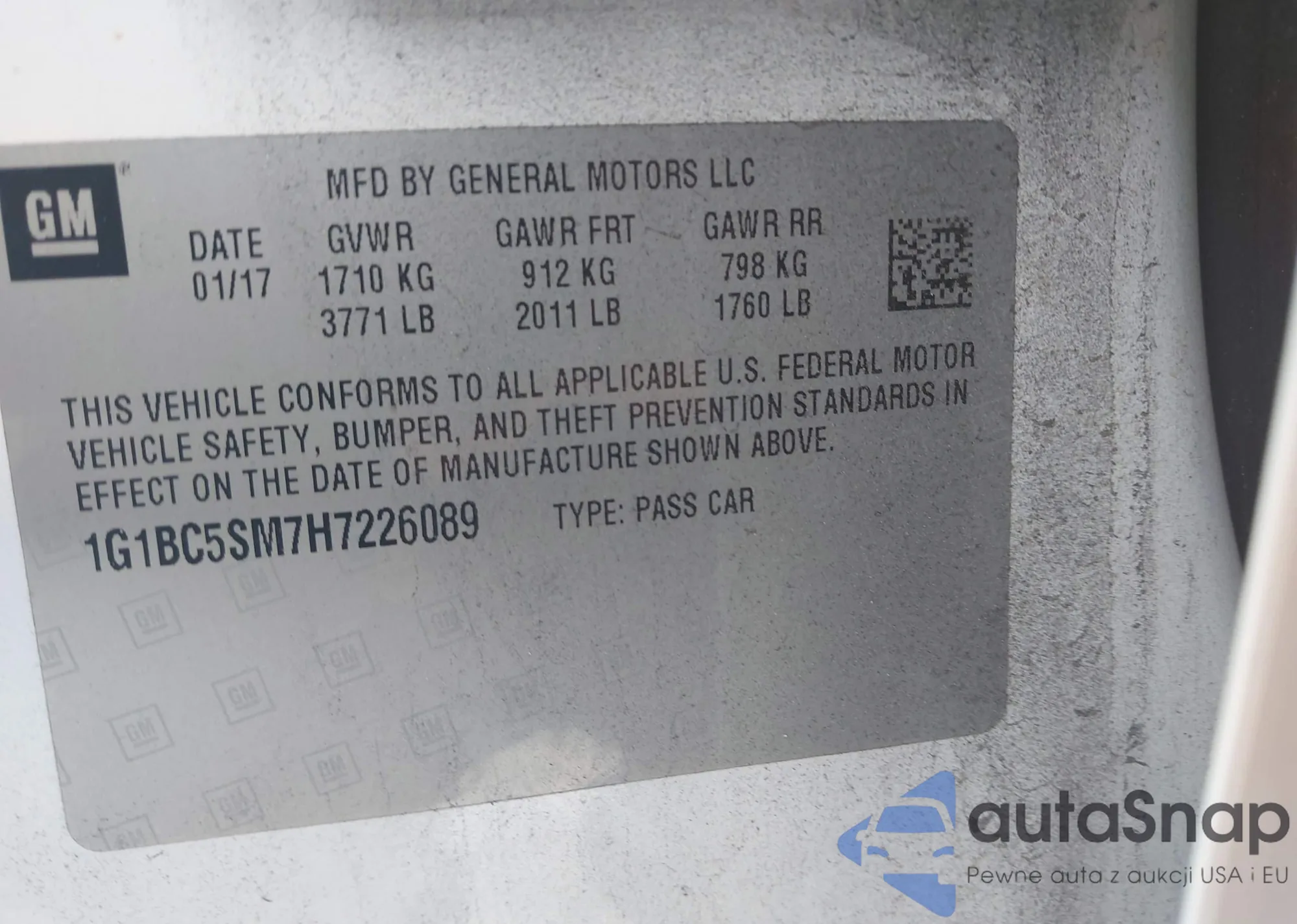 LOT: 42861360 VIN: WP1AB2A57HLB11142
