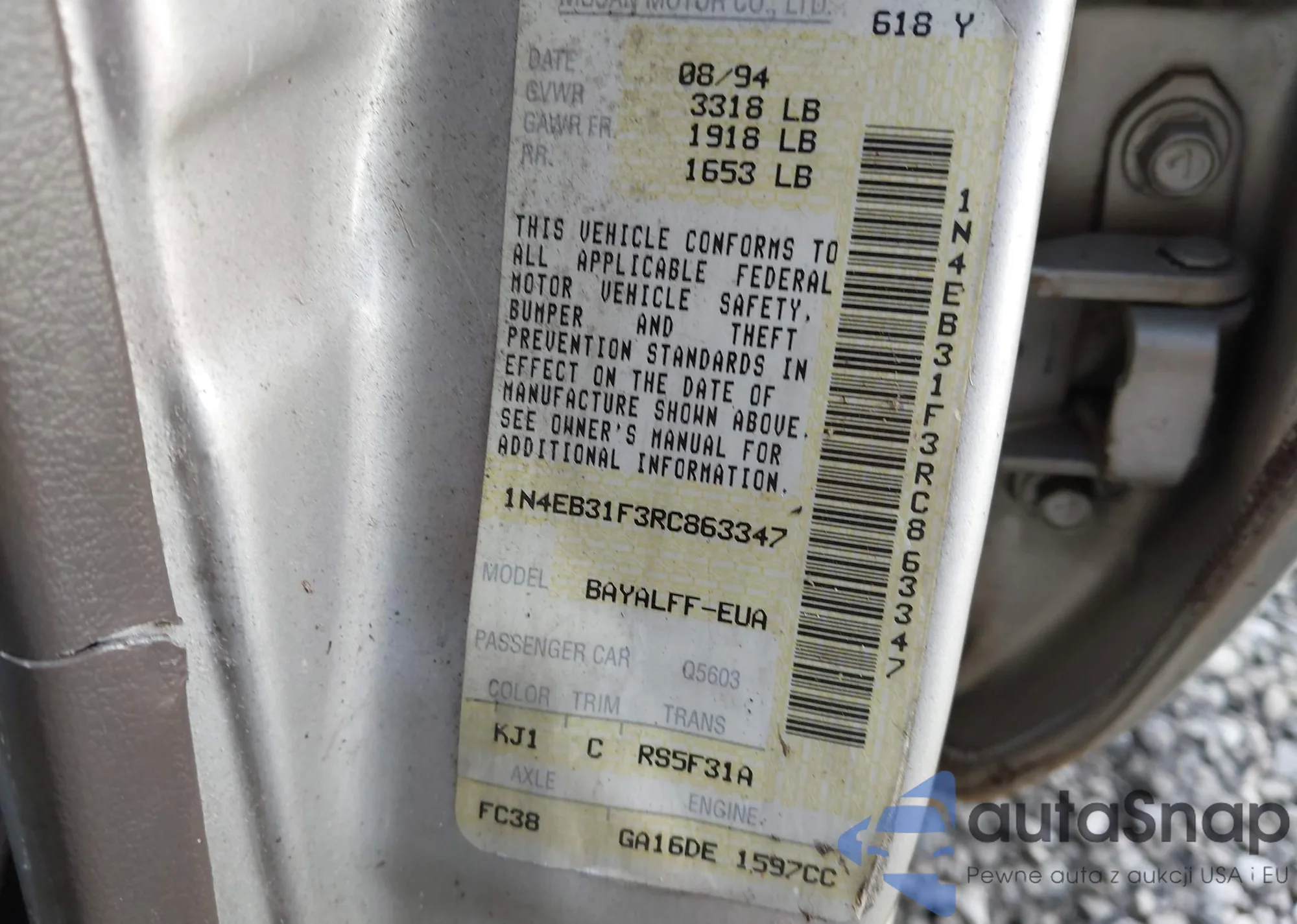 LOT: 43122445 VIN: 1N4EB31F3RC863347