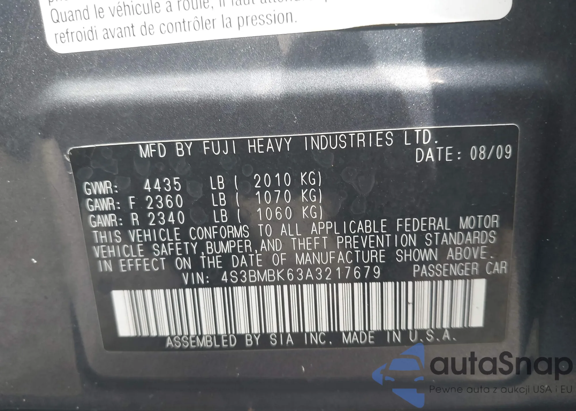 • VIN 1HGCP264X9A105894