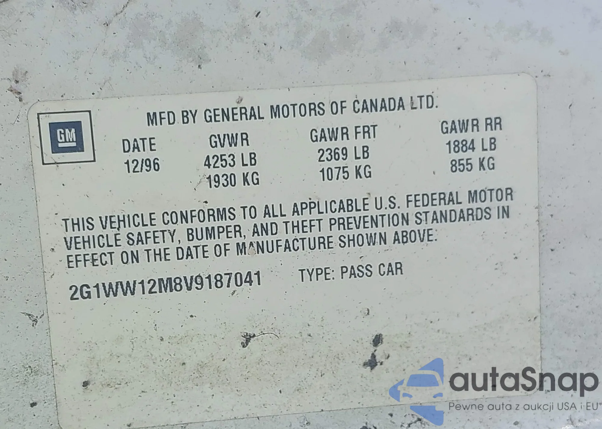 LOT: 43214381 VIN: 2G1WW12M8V9187041