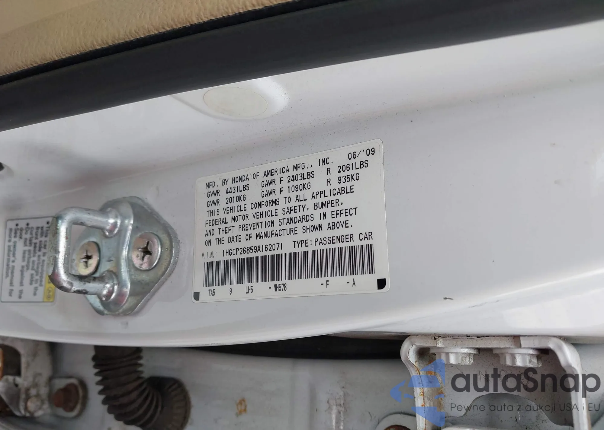 LOT: 42835358 VIN: 1HGCP26859A162071
