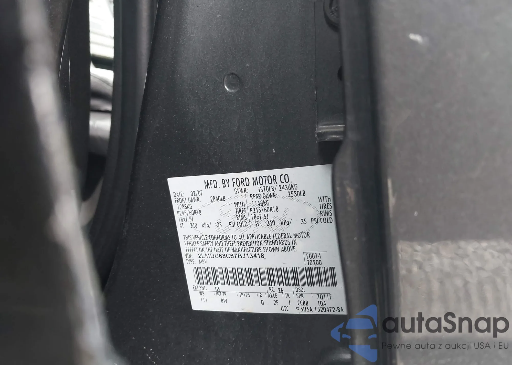 • VIN 2LMDU68C67BJ13418