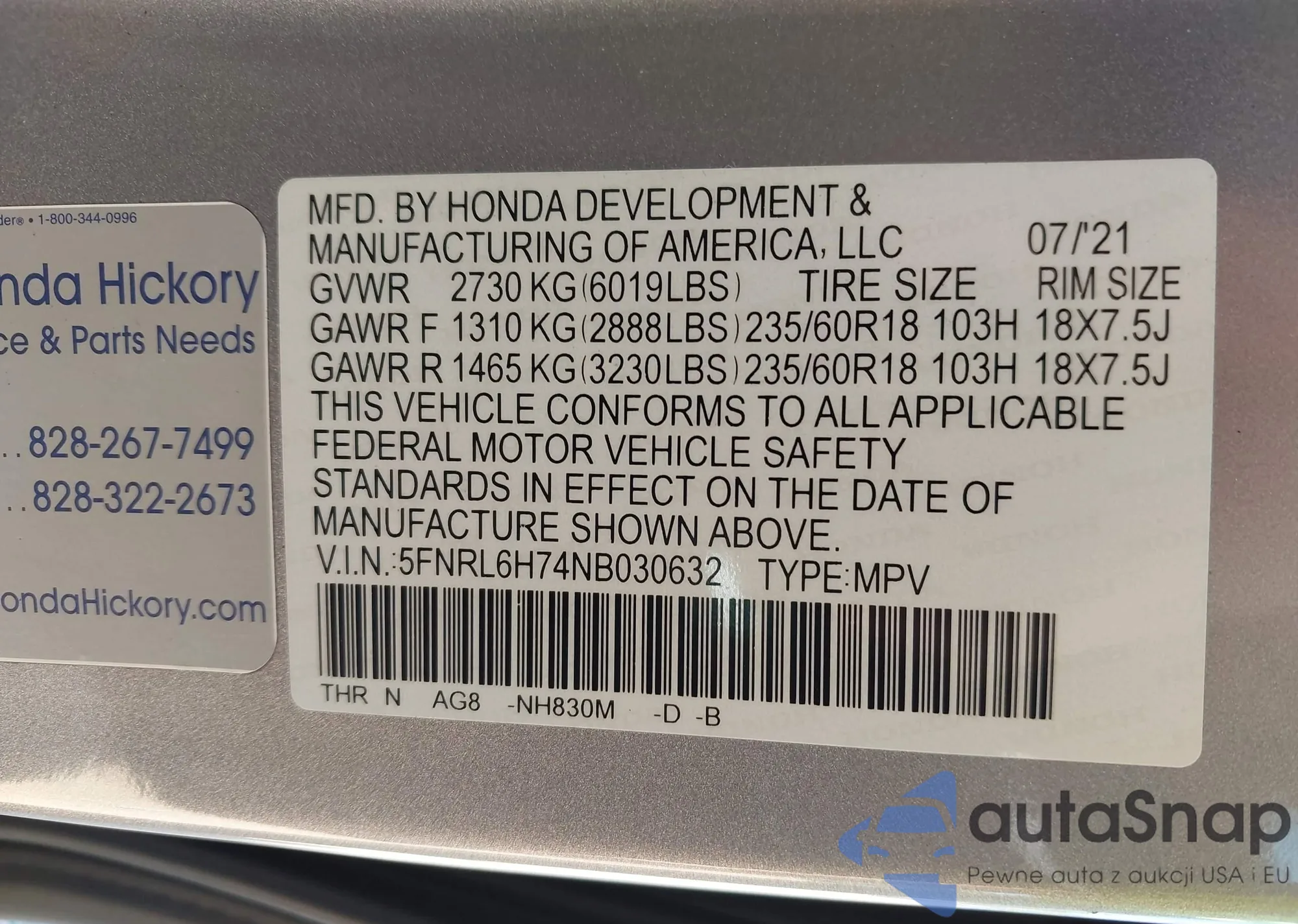• VIN 1HGCV1F34MA018637