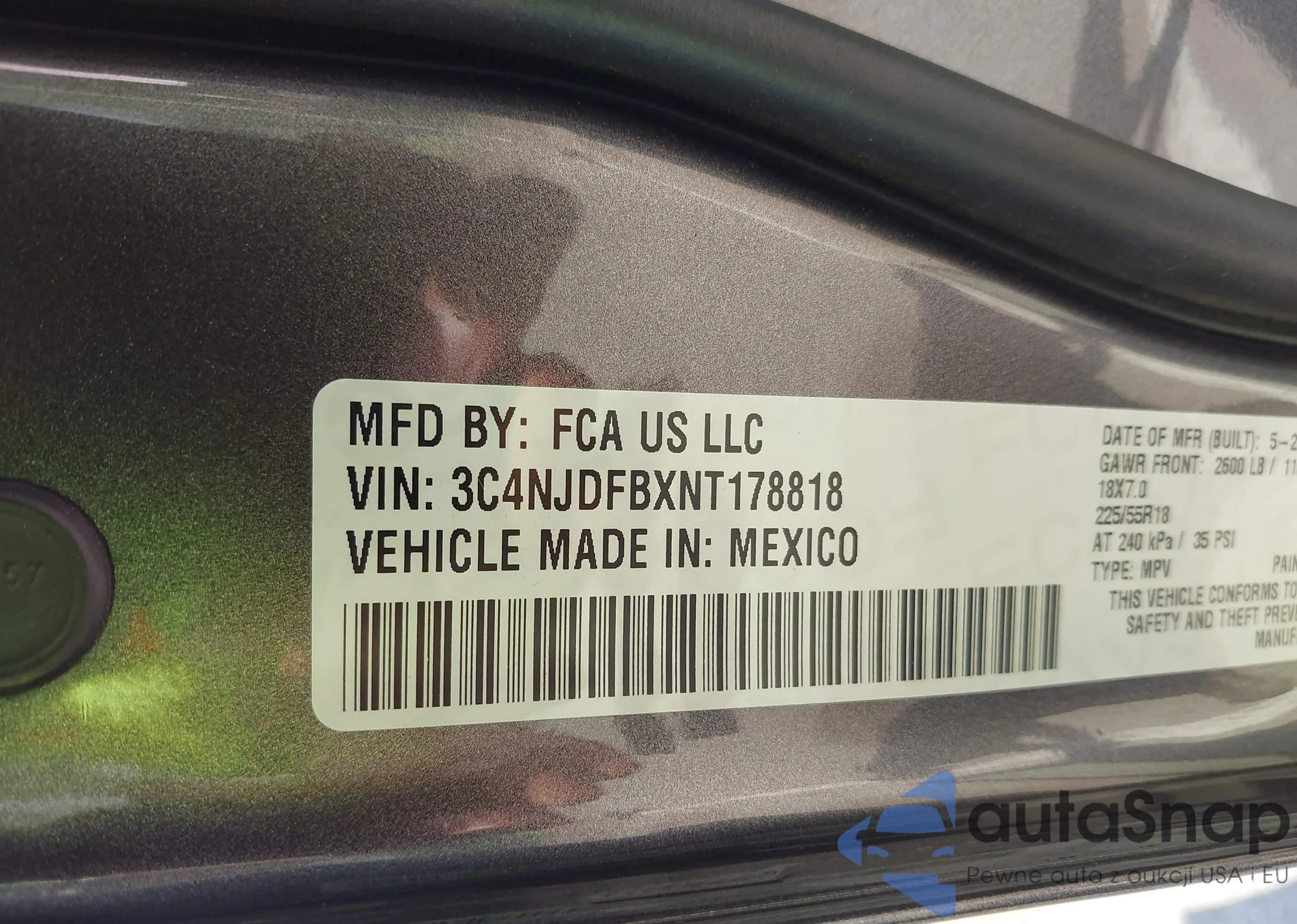 • VIN 3C4NJDFBXNT178818