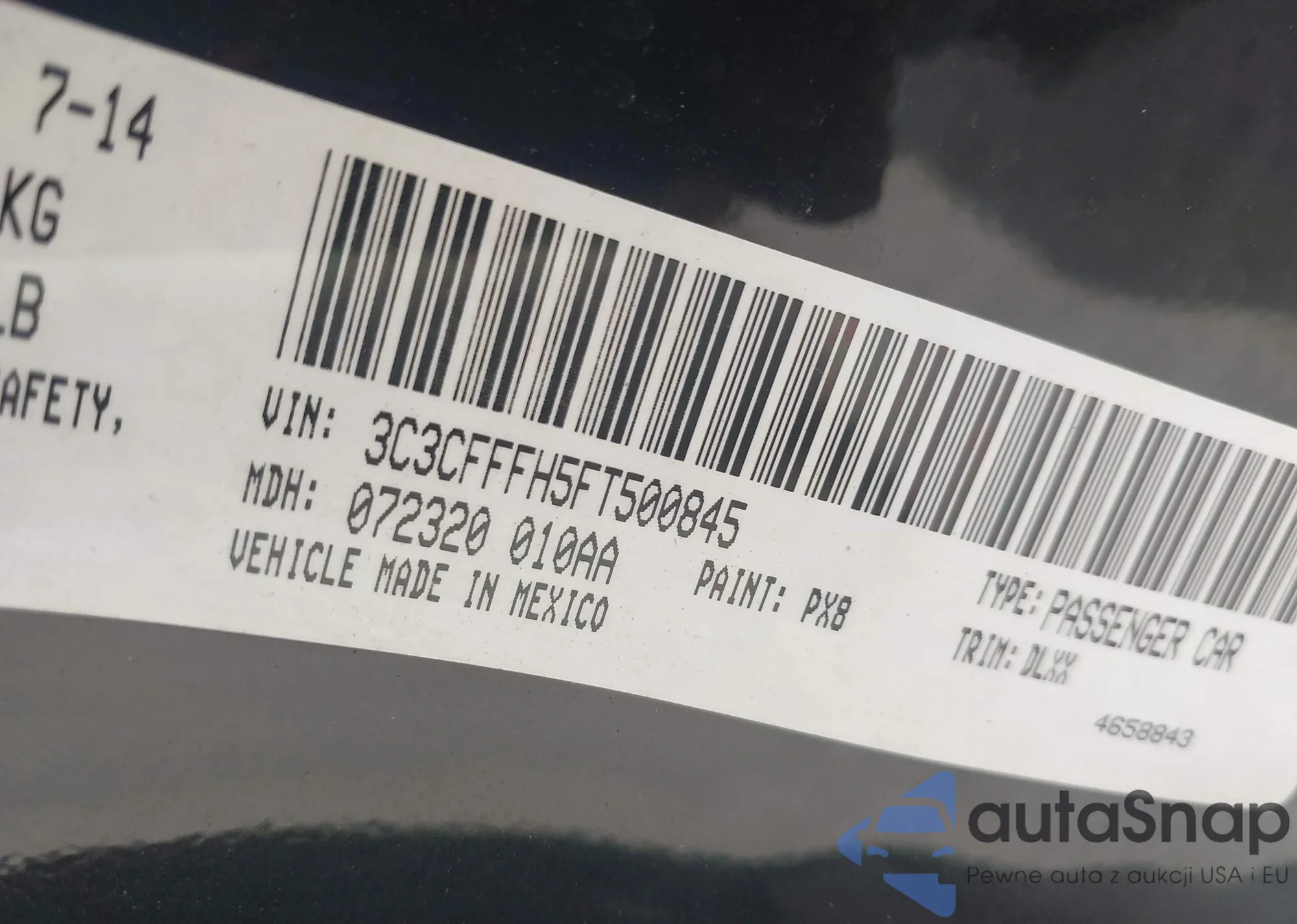 • VIN 3C3CFFFH5FT500845