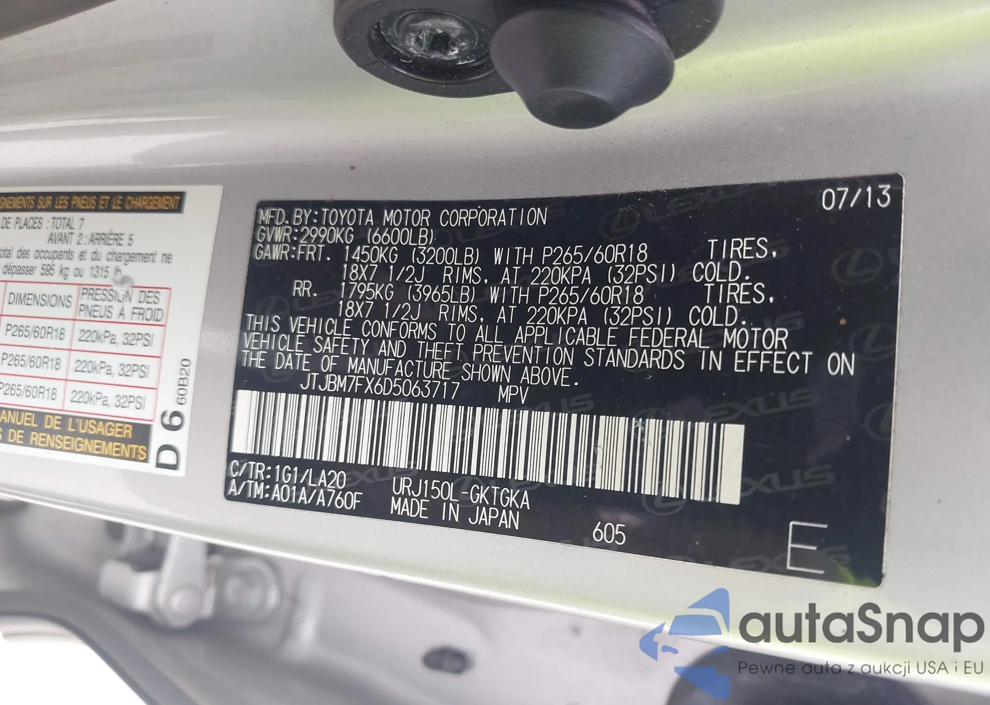 • VIN JTJBM7FX6D5063717
