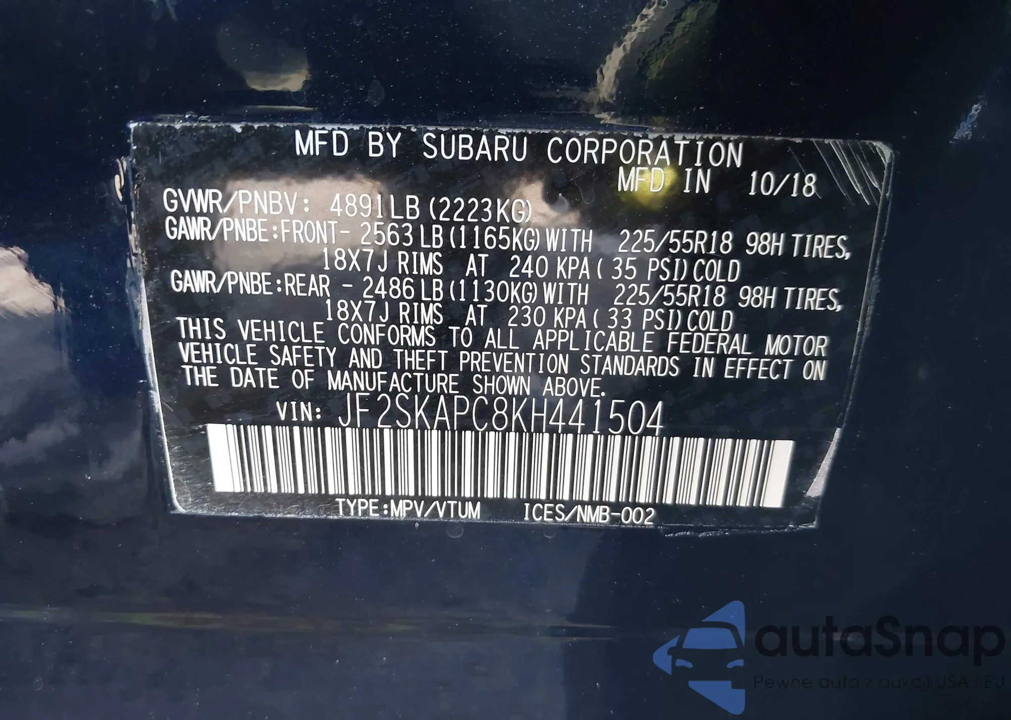 • VIN JF2SKAPC8KH441504