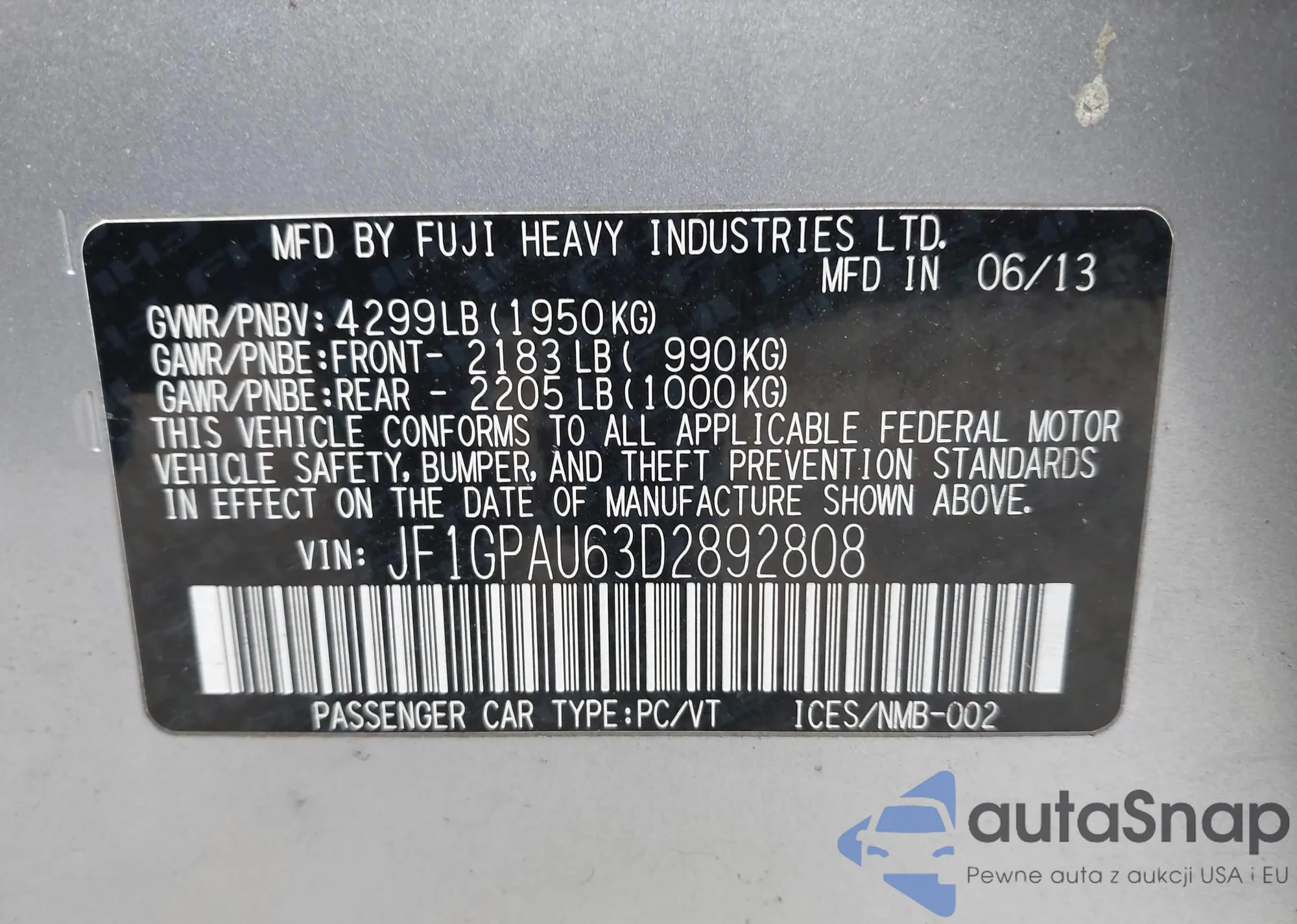 • VIN JF1GPAU63D2892808
