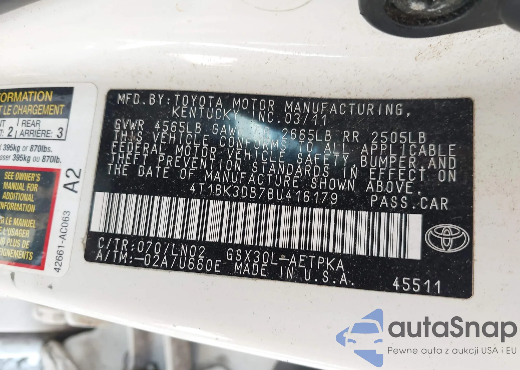 LOT: 43117845 VIN: 1J4RR5GT2BC631628