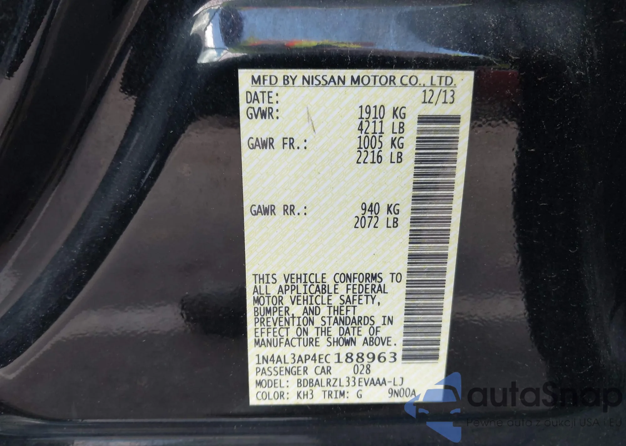 LOT: 43109238 VIN: 3FADP4BJ6DM207026